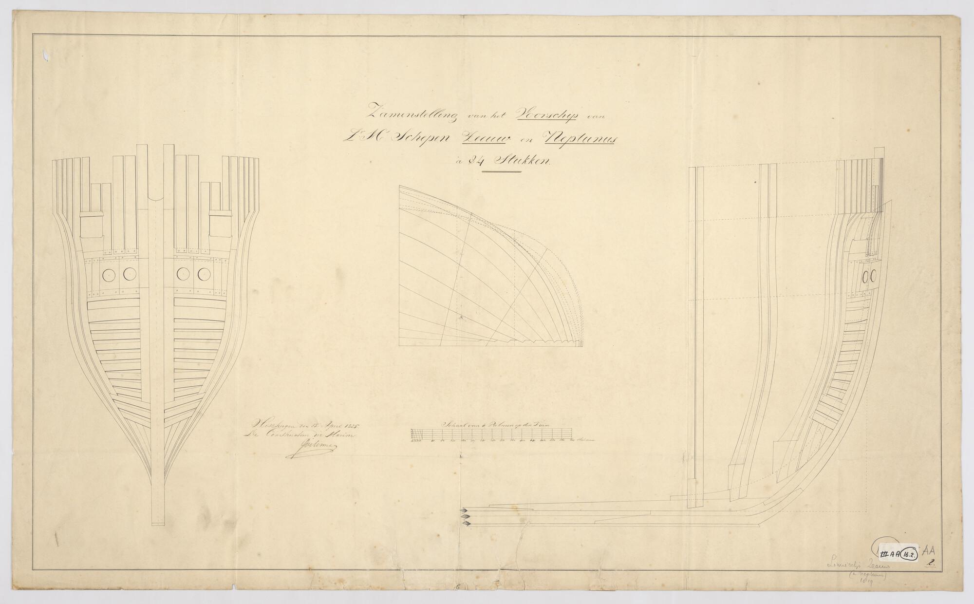 Constructieplan van het voorschip van de linieschepen 'Zeeuw' en 'Neptunus'
