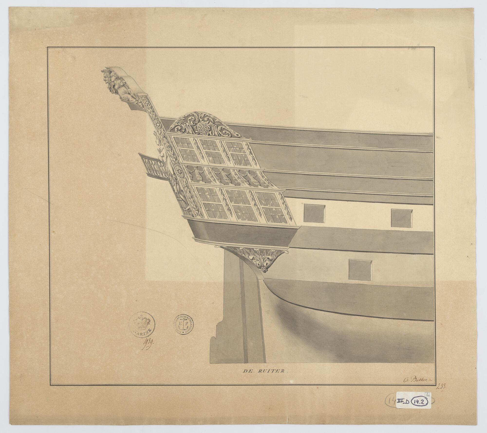 Ontwerp van de zijgalerij van het linieschip Admiraal de Ruyter