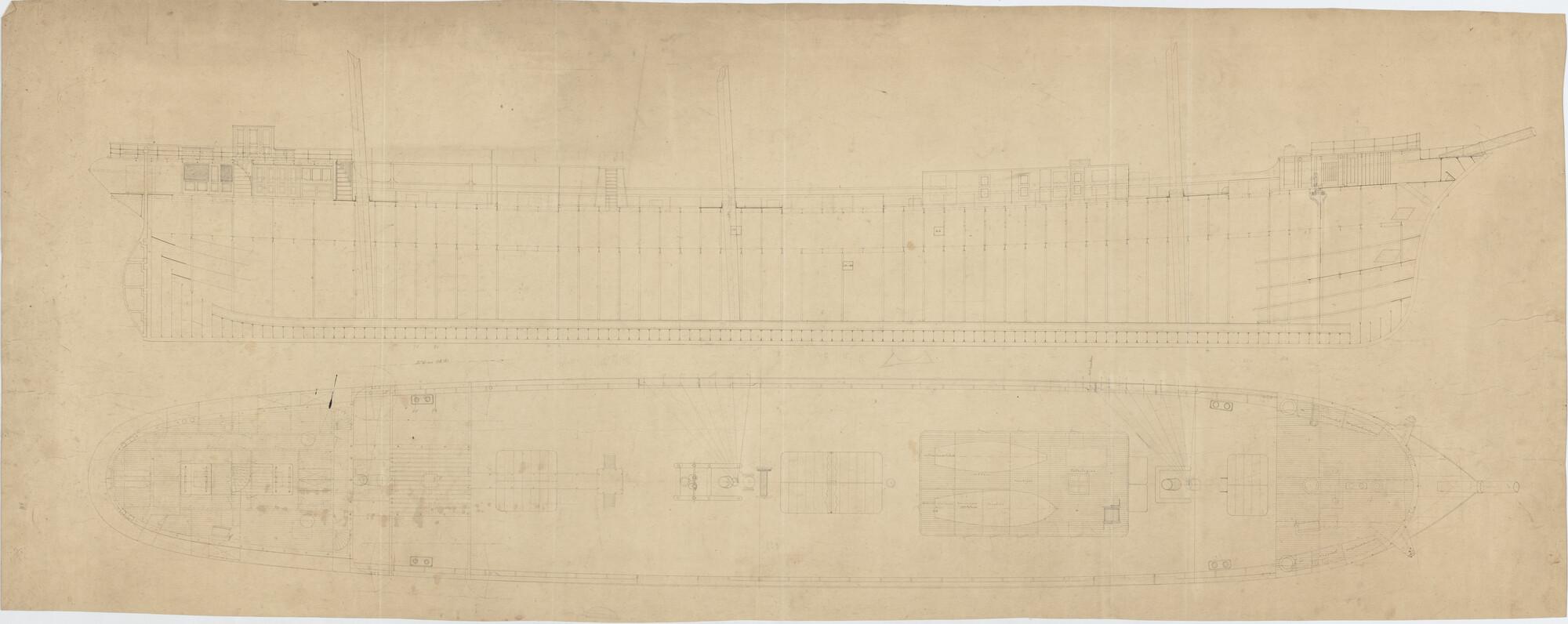 Verticale langsdoorsnede, bovendek van het fregatschip 'Nederland'