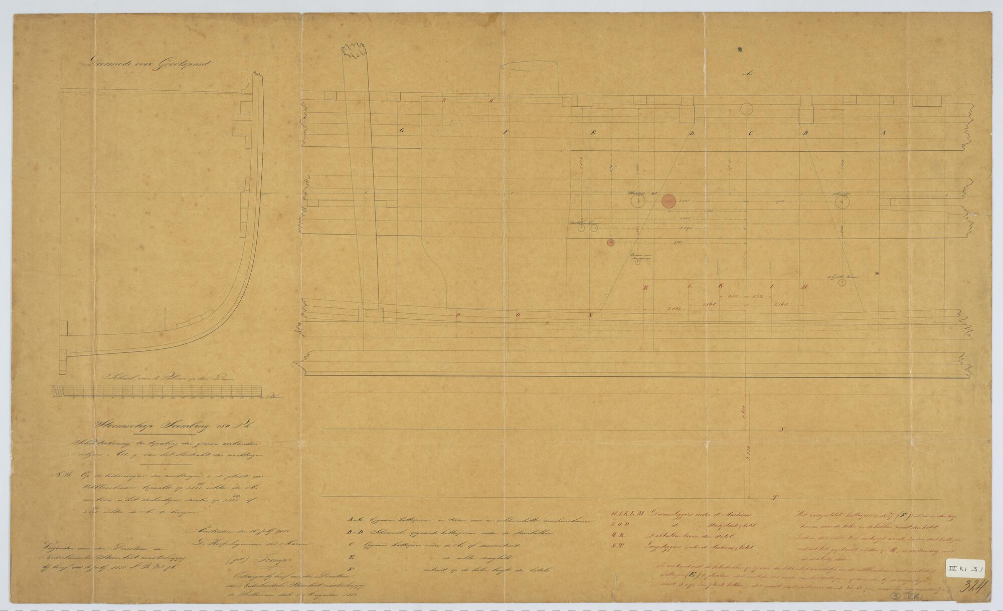 Zr.Ms. "Sindoro" en "Soembing", 1850. 45 x 8 x 5.20 ellen. verticale langsdoorsnede, horizontale langsdoorsnede, (2 tekeningen).