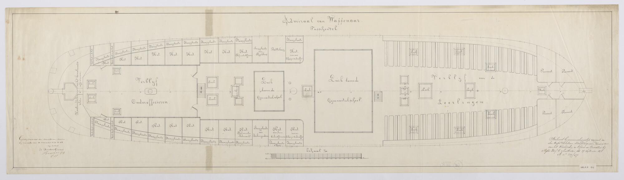 Het fregat eerste klasse met stoomvermogen Zr.Ms. "Admiraal van Wassenaar", 1852. Tussendek 1875.