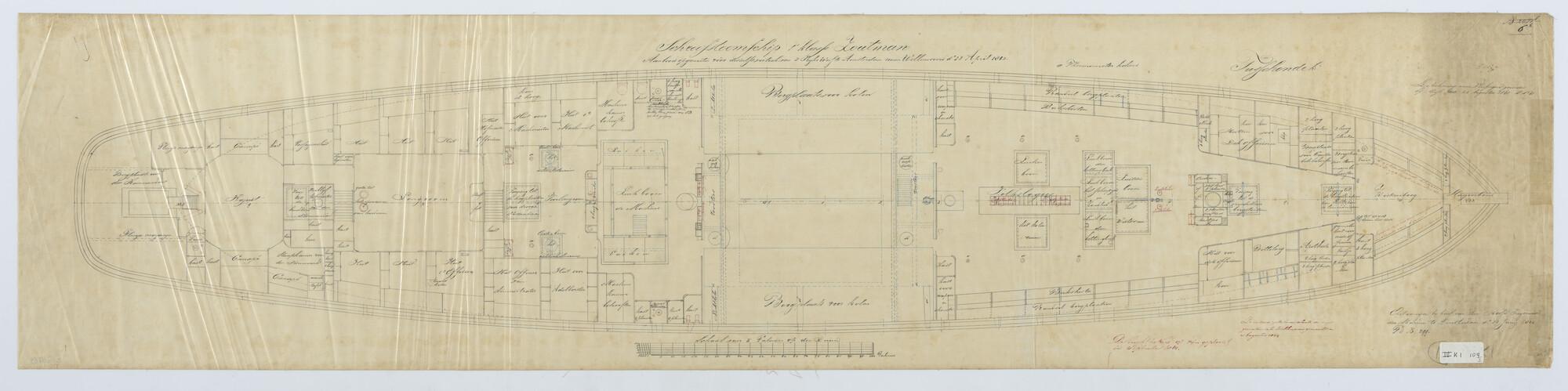Schroefstoomschip 1ste klasse Zr.Ms. "Zoutman", 1859. Tussendek en koebrugdek.