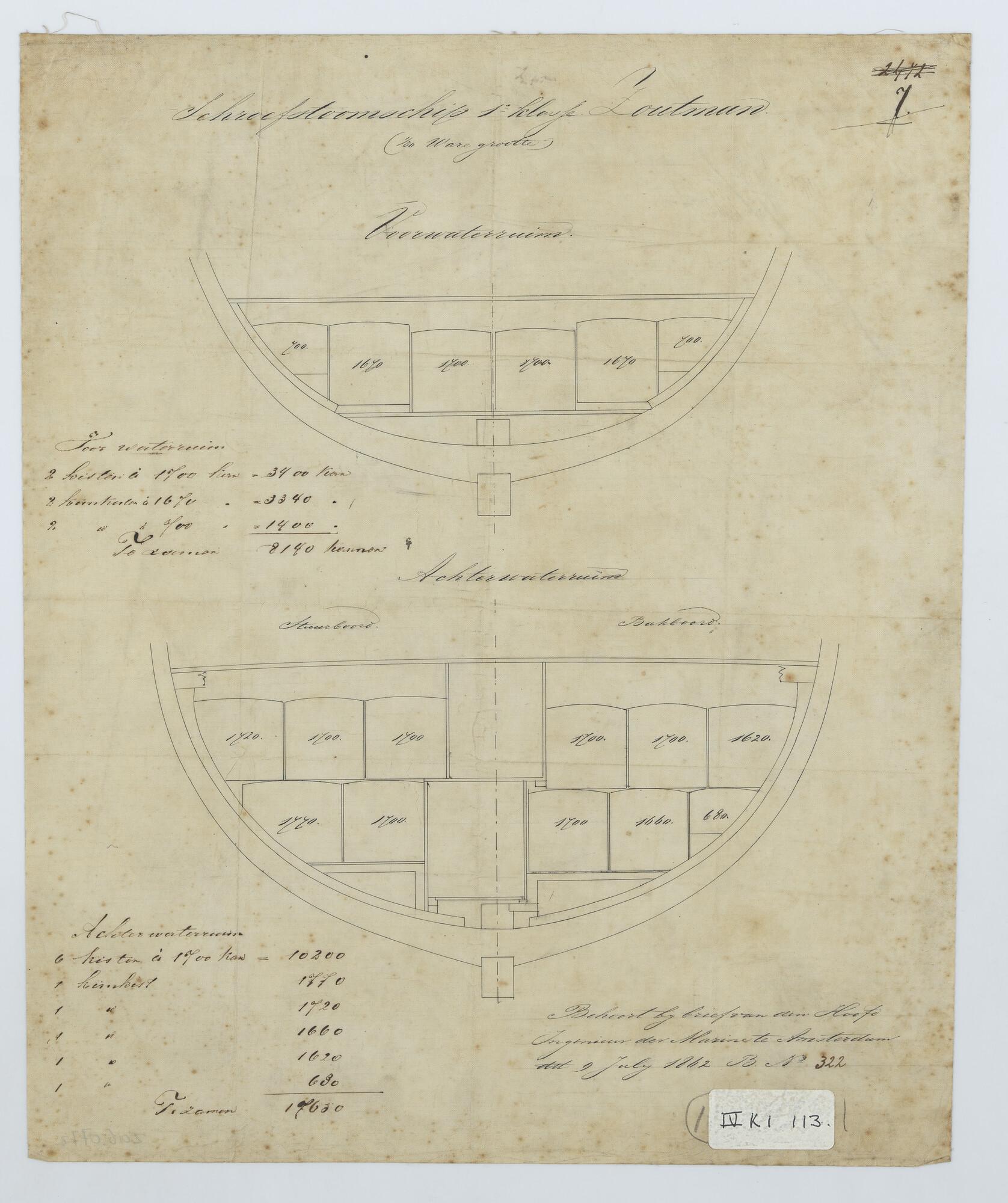 Schroefstoomschip 1ste klasse Zr.Ms. "Zoutman", 1859. Voor- en achter waterruim.