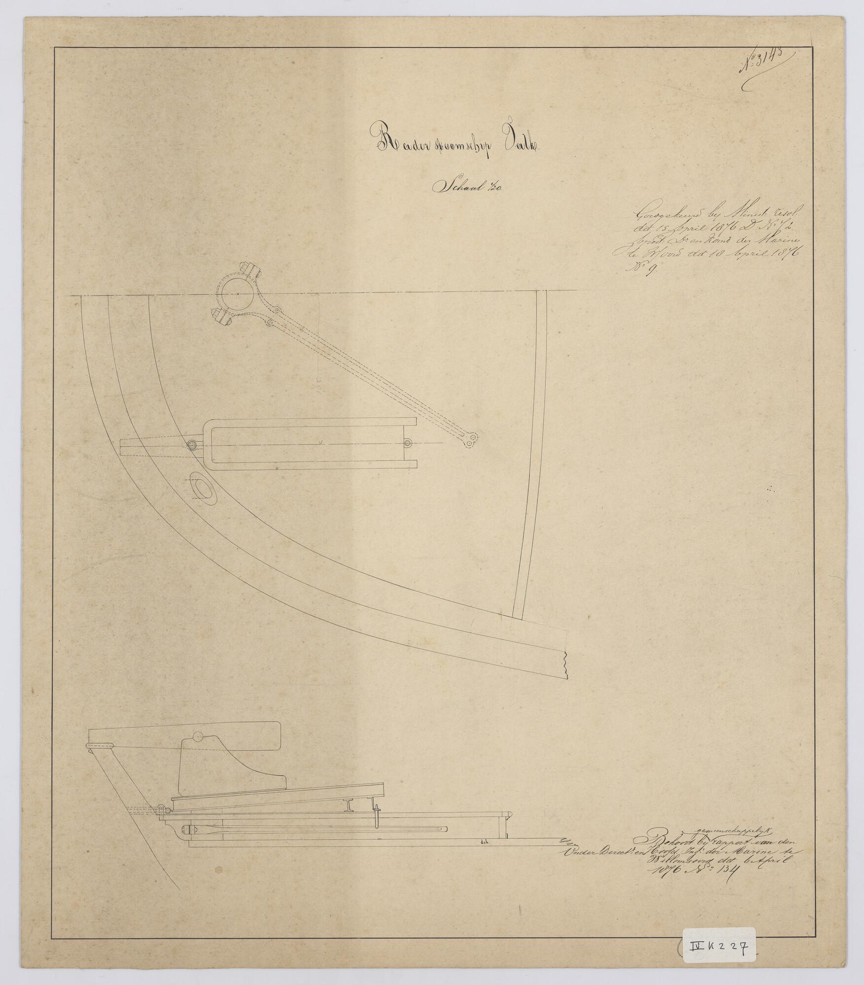 Het raderstoomschip Zr.Ms. Valk, 1863. Achterschip met roerkoning en helmstok, met kanonsituatie.