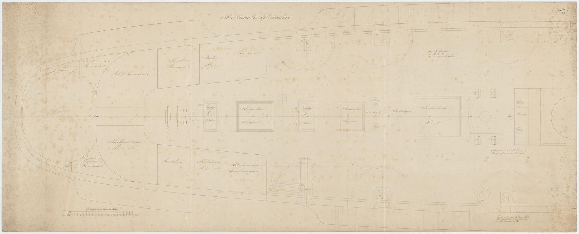 Schroefstoomschip 1ste klasse Zr.Ms. "Zilveren Kruis", 1867. Bovendek achterschip 1886.