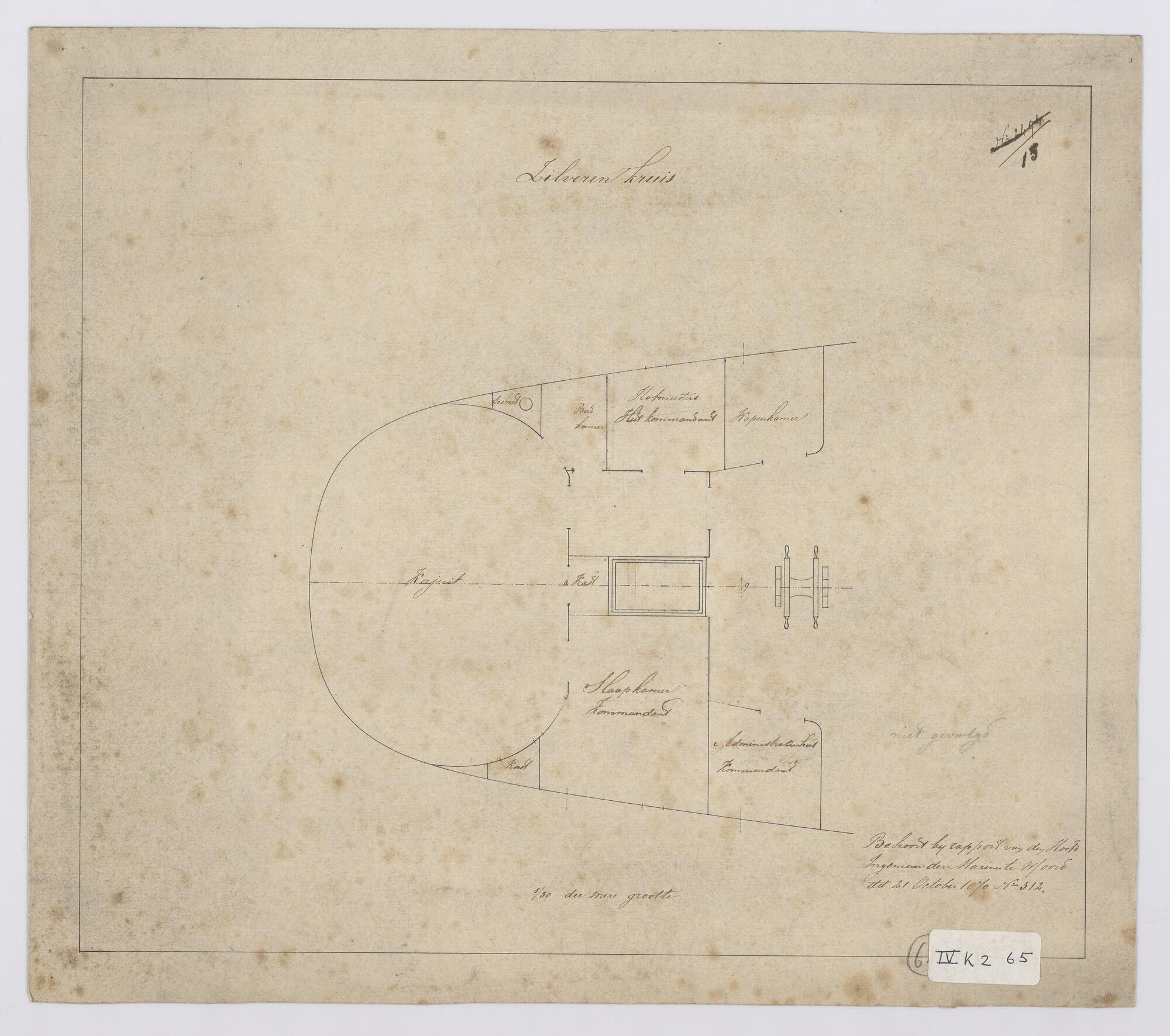 Schroefstoomschip 1ste klasse Zr.Ms. "Zilveren Kruis", 1867. Voorstel indeling kajuit en omgeving 1870.