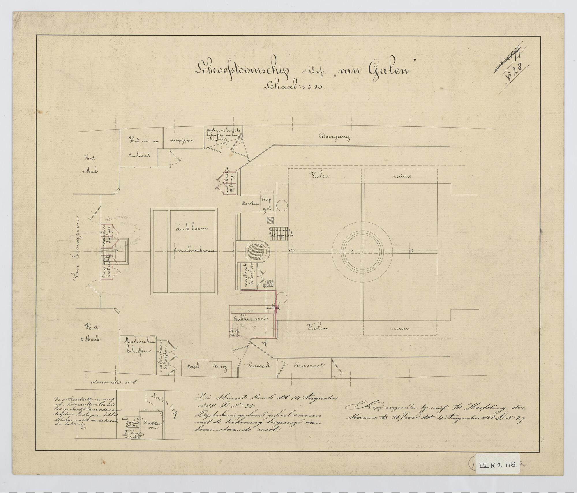 Het schroefstoomschip 1ste klasse Zr.Ms. "Van Galen", 1868. Wijzigingen aan opstelling bakkersoven 1886.