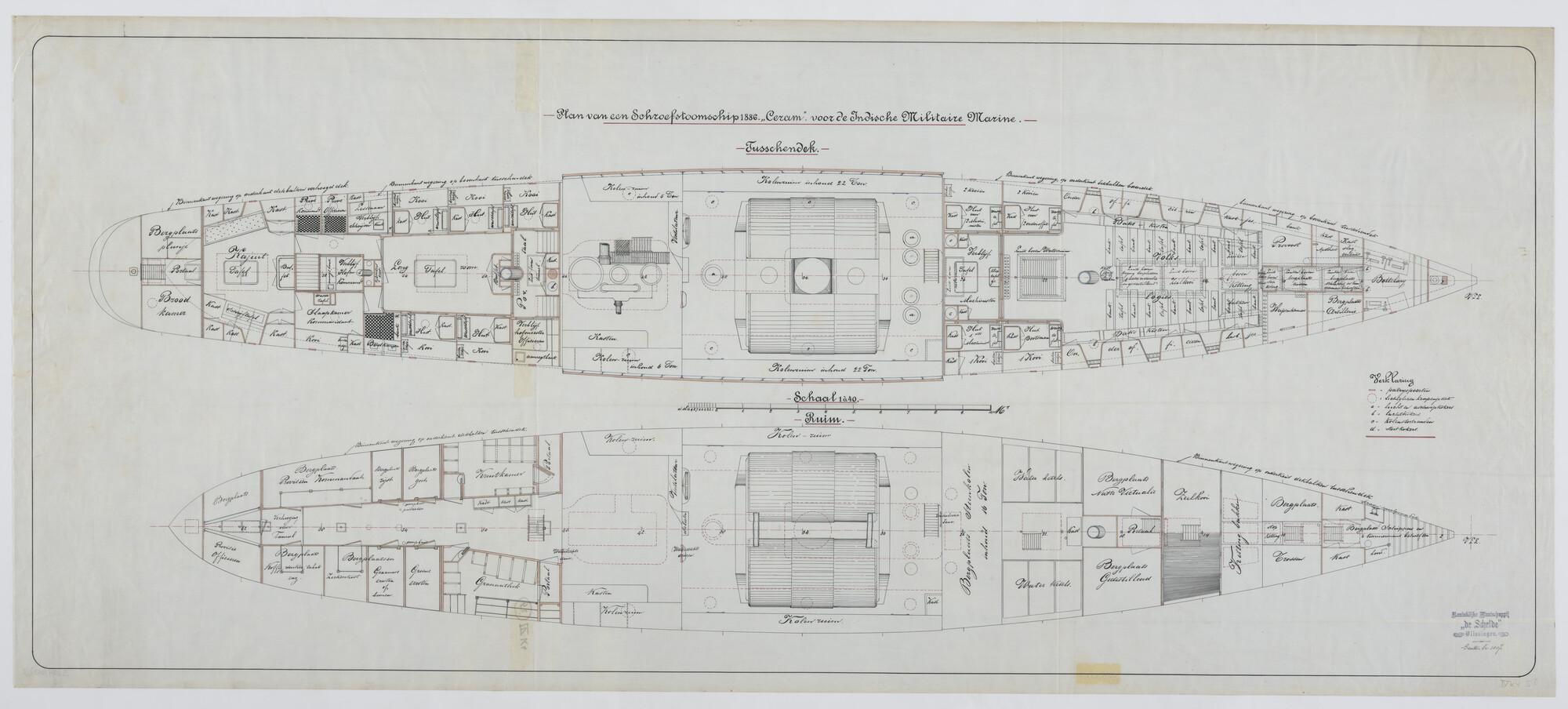 Het schroefstoomschip Zr.Ms. "Ceram", 1886. Tussendek en ruim.