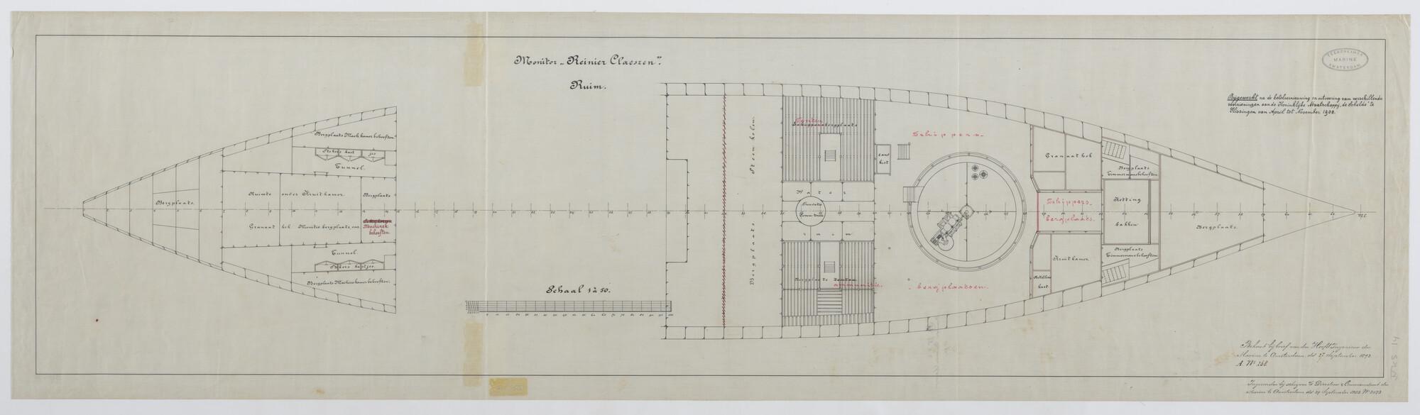 De monitor Zr.Ms. "Reinier Claeszen", 1890. Ruim.