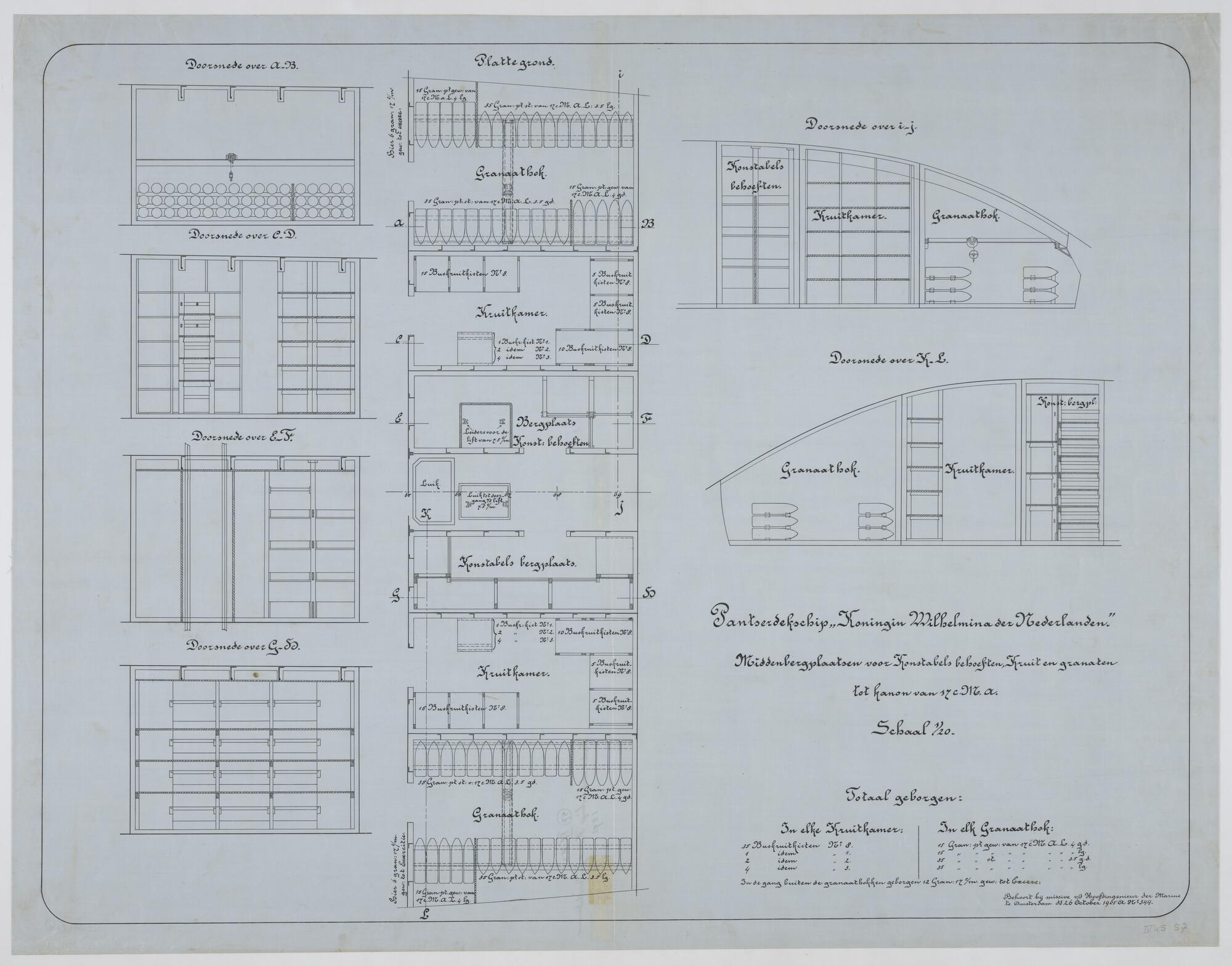 Het pantserdektorenschip Hr.Ms. "Koningin Wilhelmina der Nederlanden", 1892. Middenbergplaats voor konstabels behoeften.