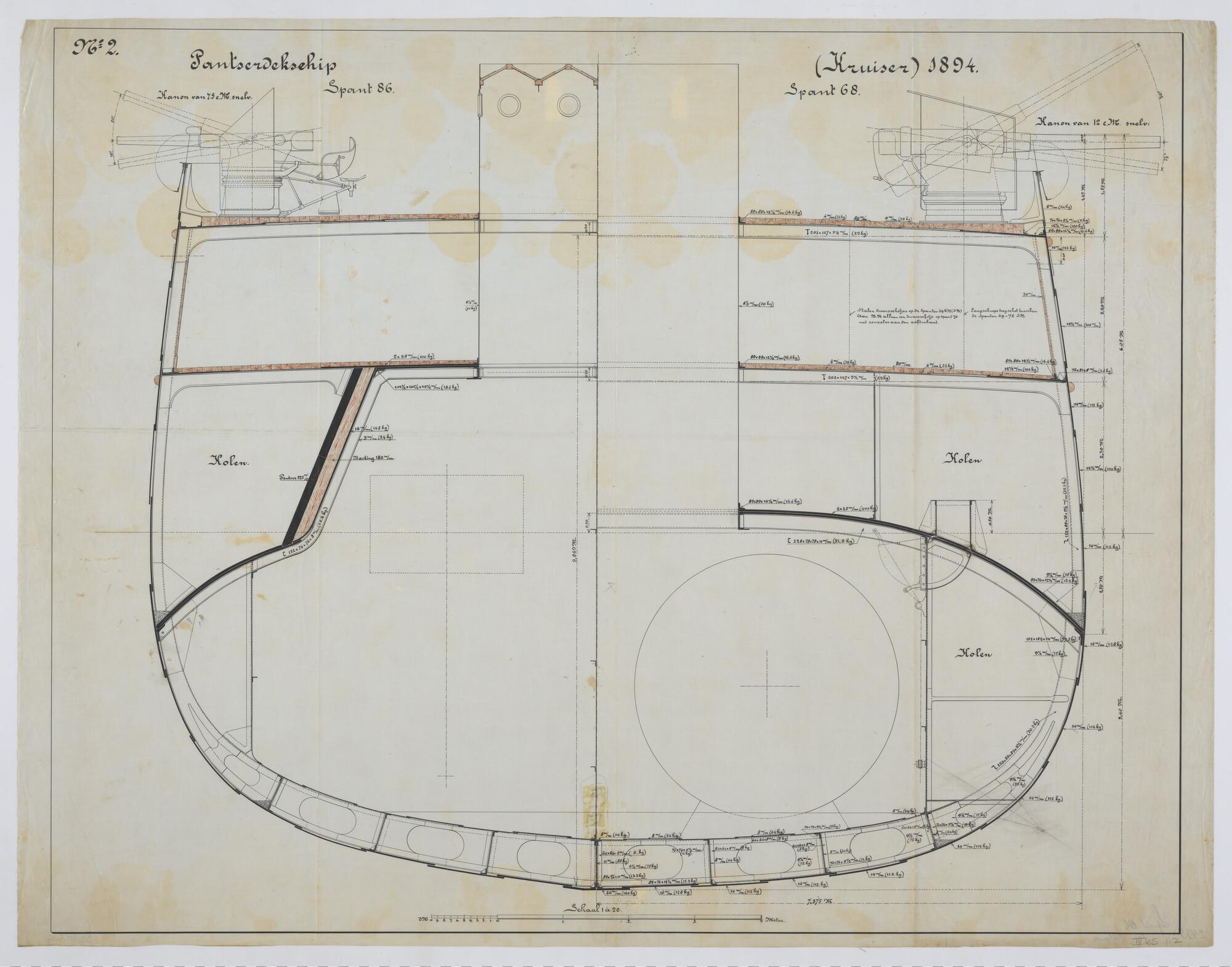 Het pantserdekschip Hr.Ms. "Holland", 1894. Spant 86 en 68.