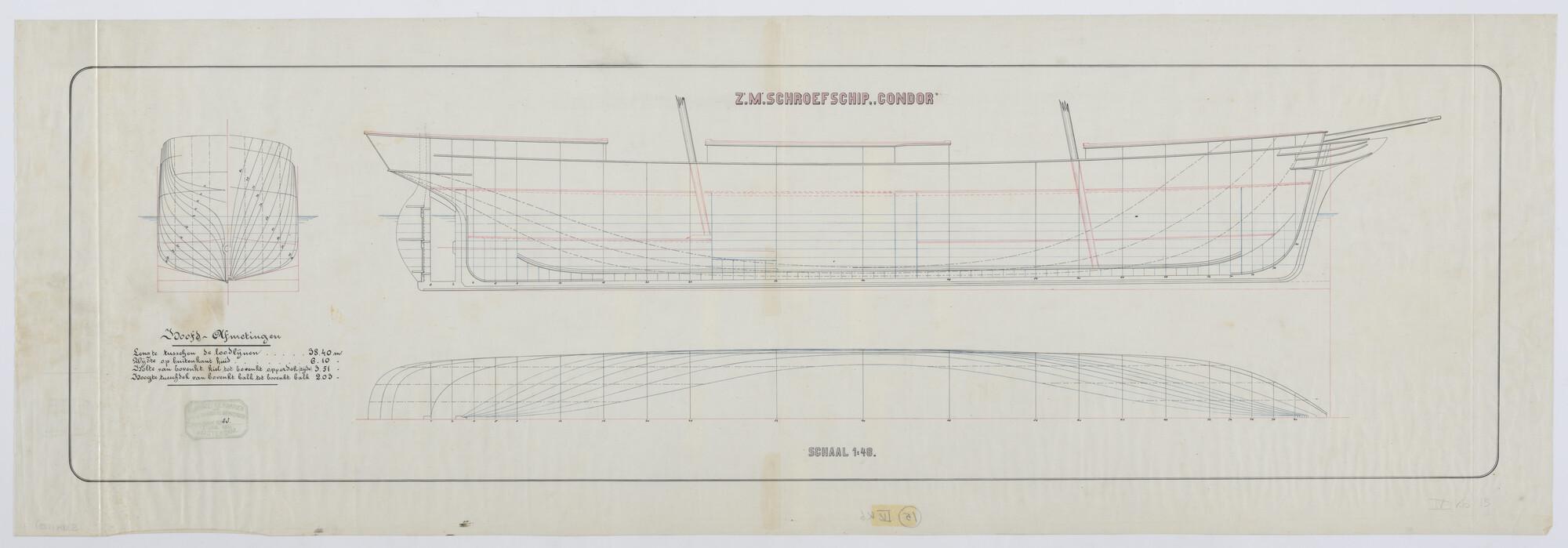 Lijnenplan van het schroefstoomschip Zr.Ms. "Condor", 1885.