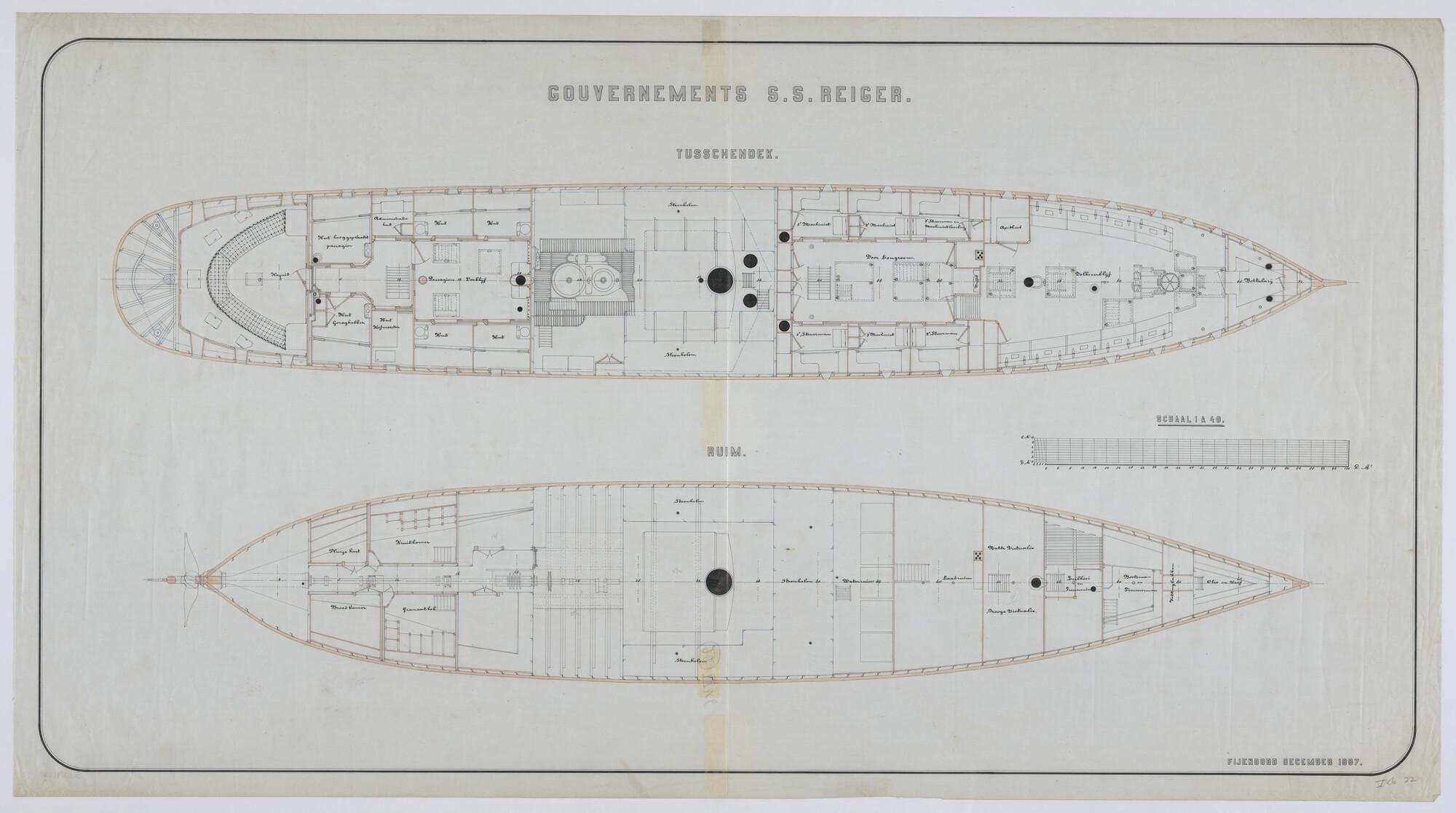 Het schroefstoomschip Zr.Ms. "Reiger", 1887. Tussendek en ruim.