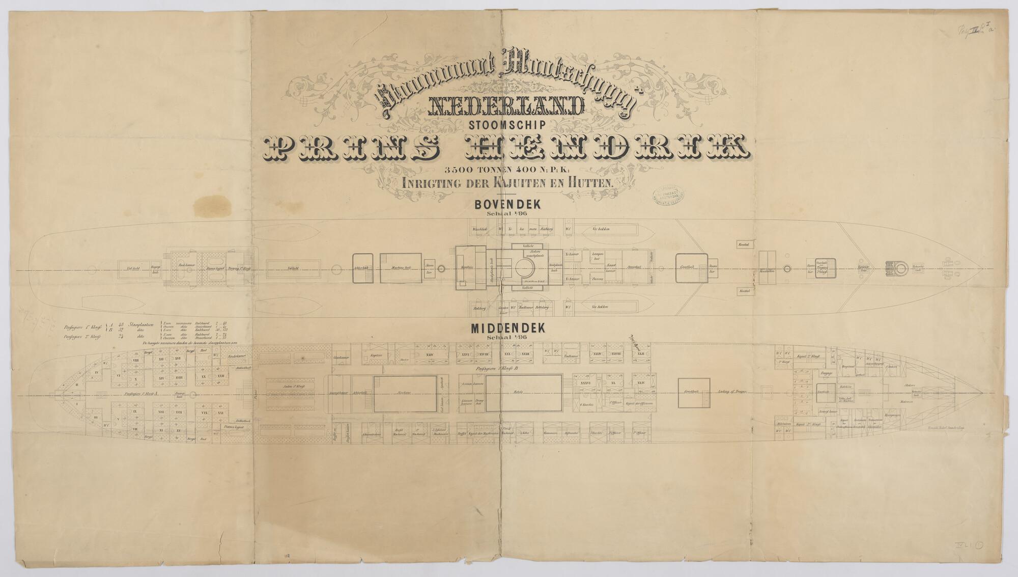Bovendek en middendek van het schroefstoomschip 'Prins Hendrik', 1871