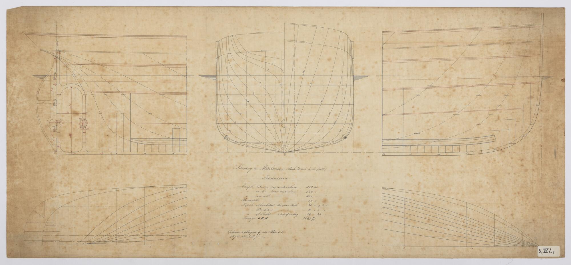Lijnenplan en Inrichting salons en hutten 1e klasse, ("Koning der Nederlanden").