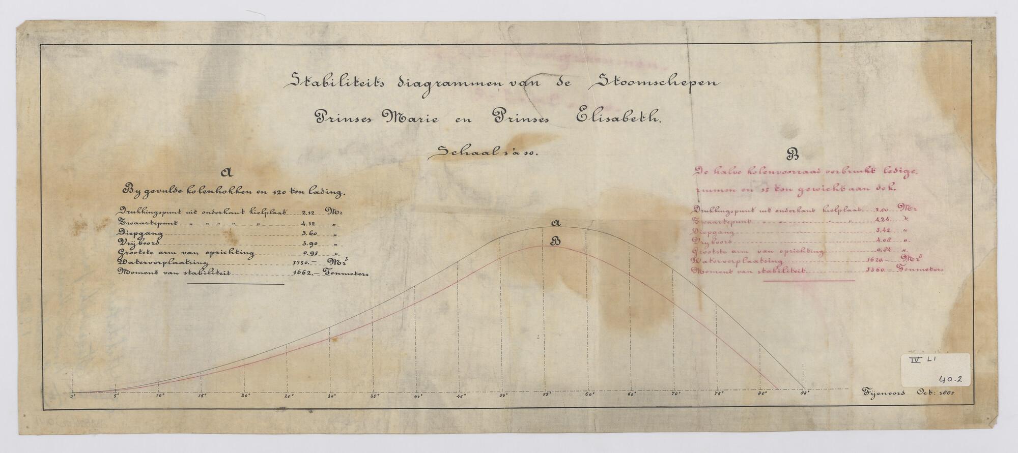 Stabiliteits diagrammen van de raderstoomschepen Prinses Marie en Prinses [...]