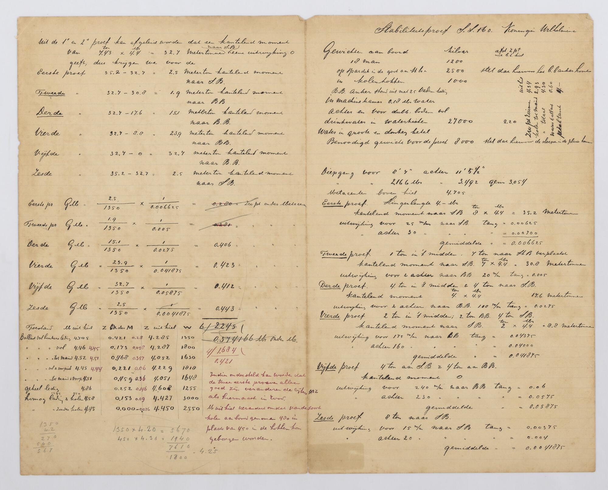 Stabiliteitsplan van het passagiersschip Koningin Wilhelmina van de SMN