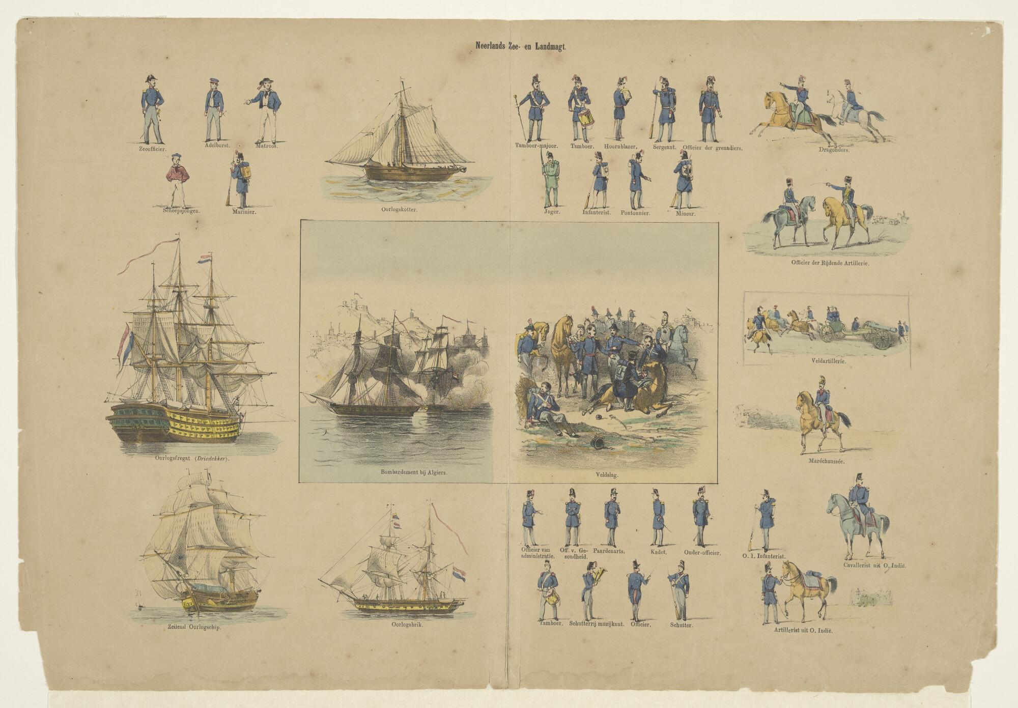 Blad met afbeeldingen van het Nederlandse leger en de Koninklijke Marine