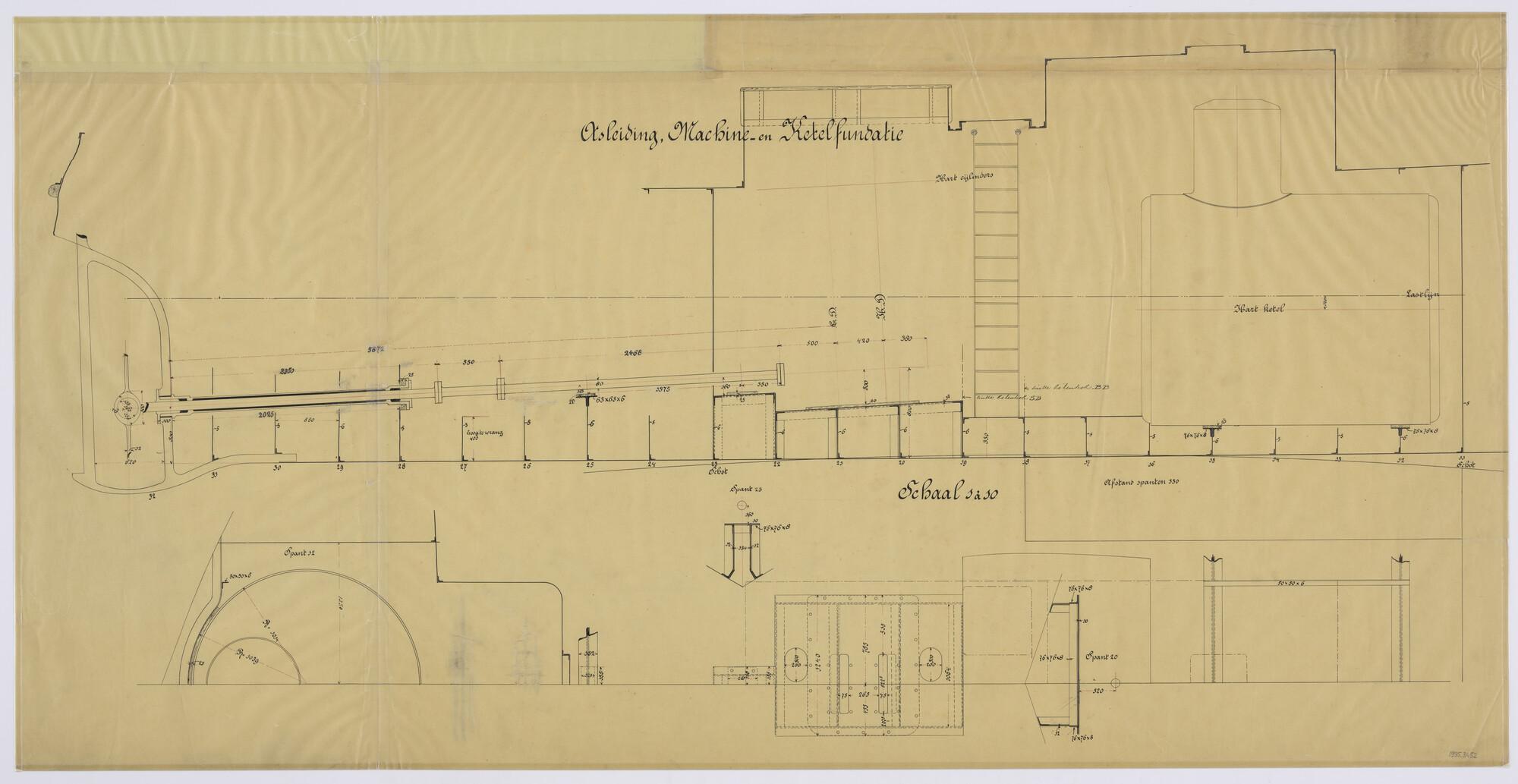 Asleiding, machine- en ketelfundatie van stoomsleepboot "Johanna Frederica".