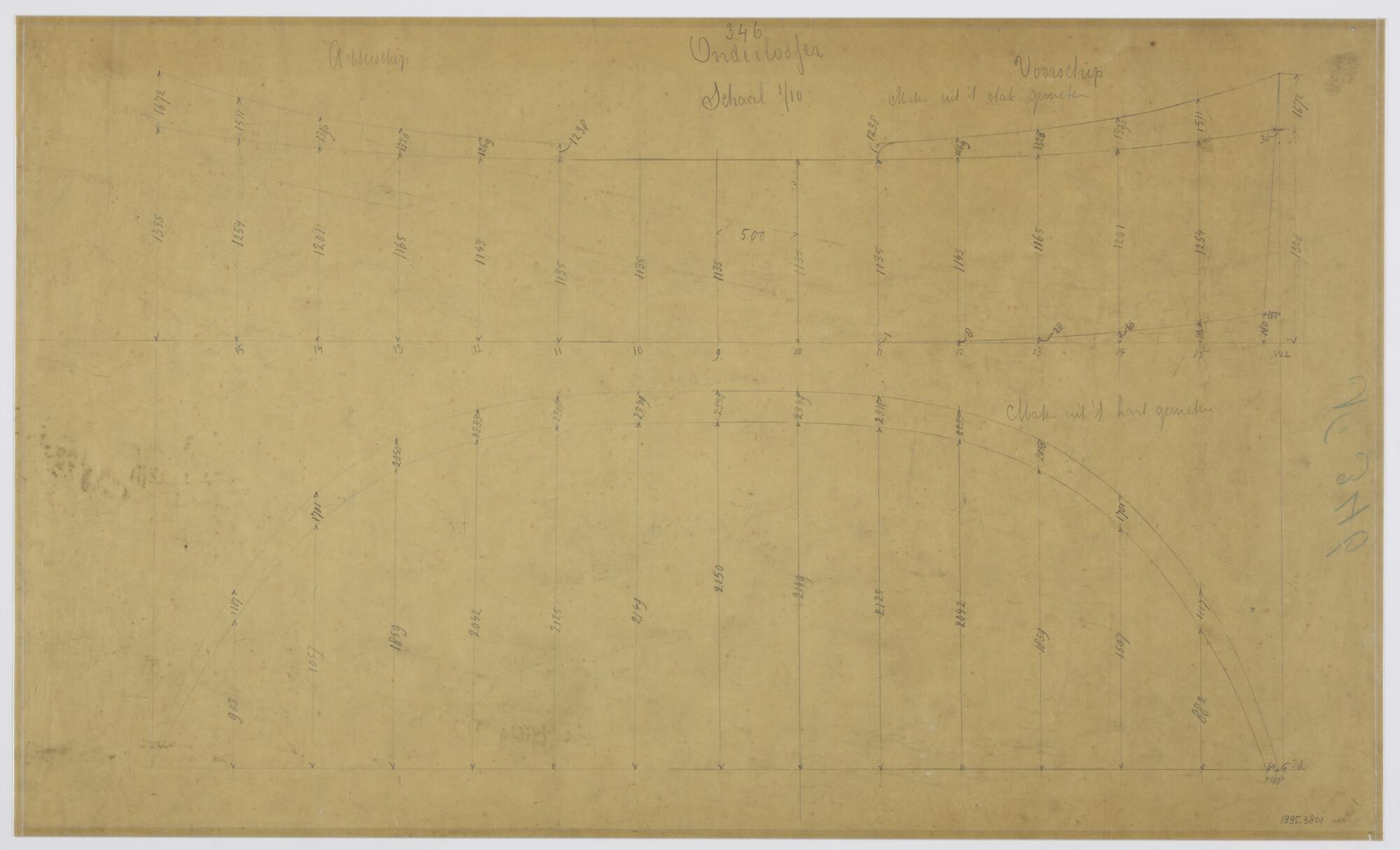 Lijnenplan voor- en achterschip van een onderlosser.