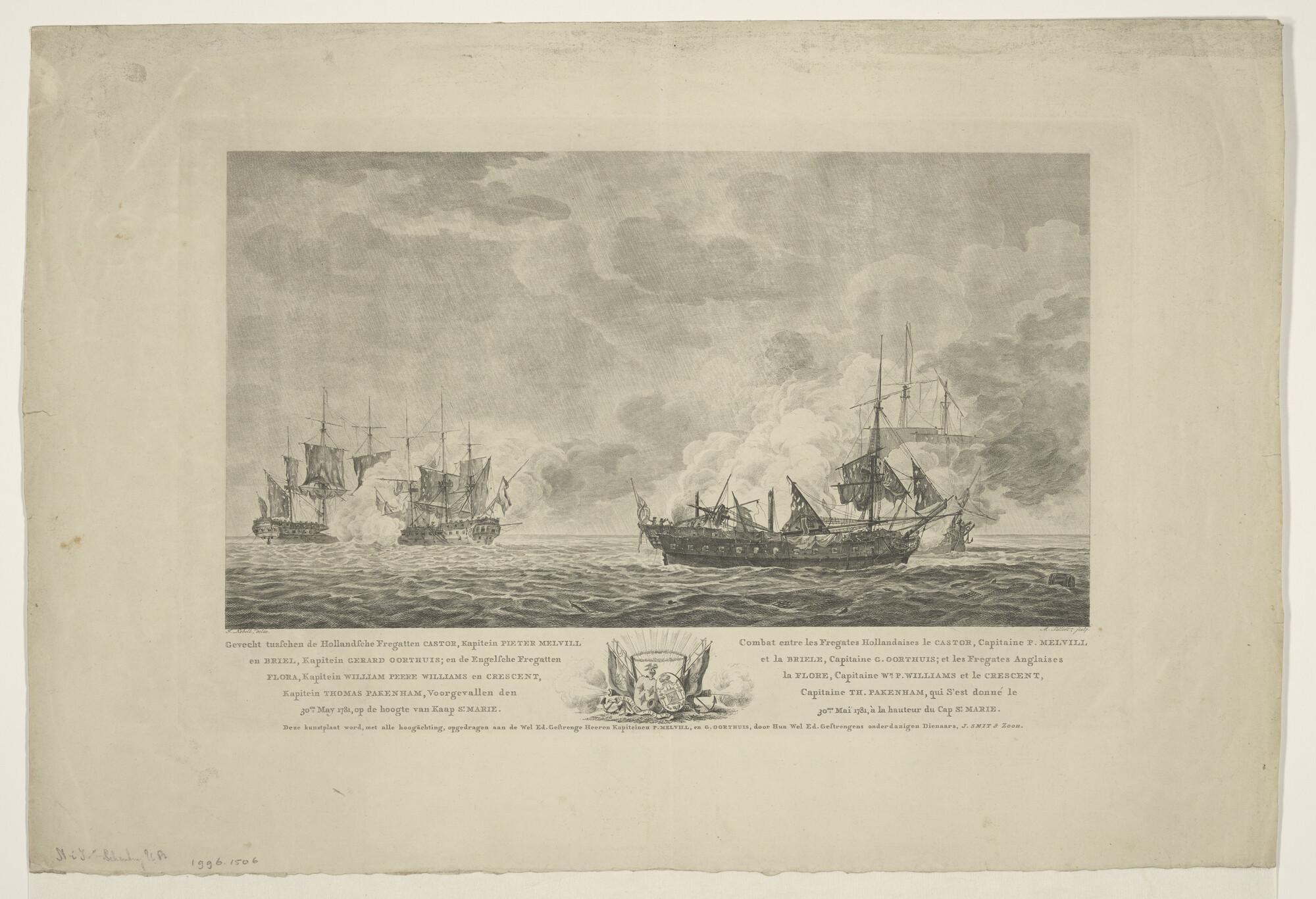 Gevechte tussen twee Nederlandse en twee Engelse fregatten bij Kaap St. Marie, nabij Cadiz, 30 mei 1781.