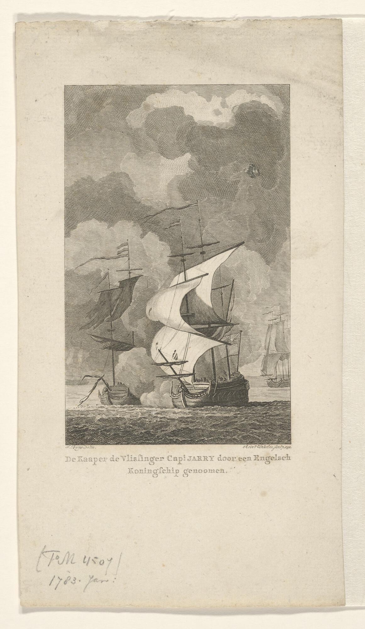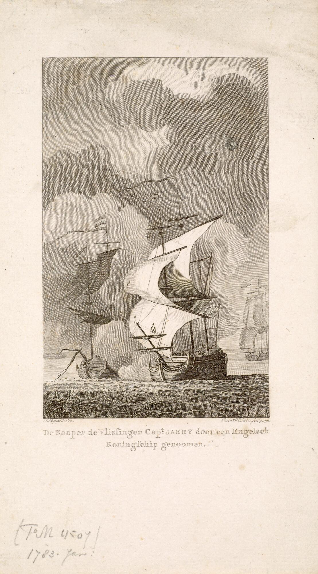 Het kaperschip De Vlissinger van kapitein Jarry wordt door een Engels oorlogsschip veroverd [...]