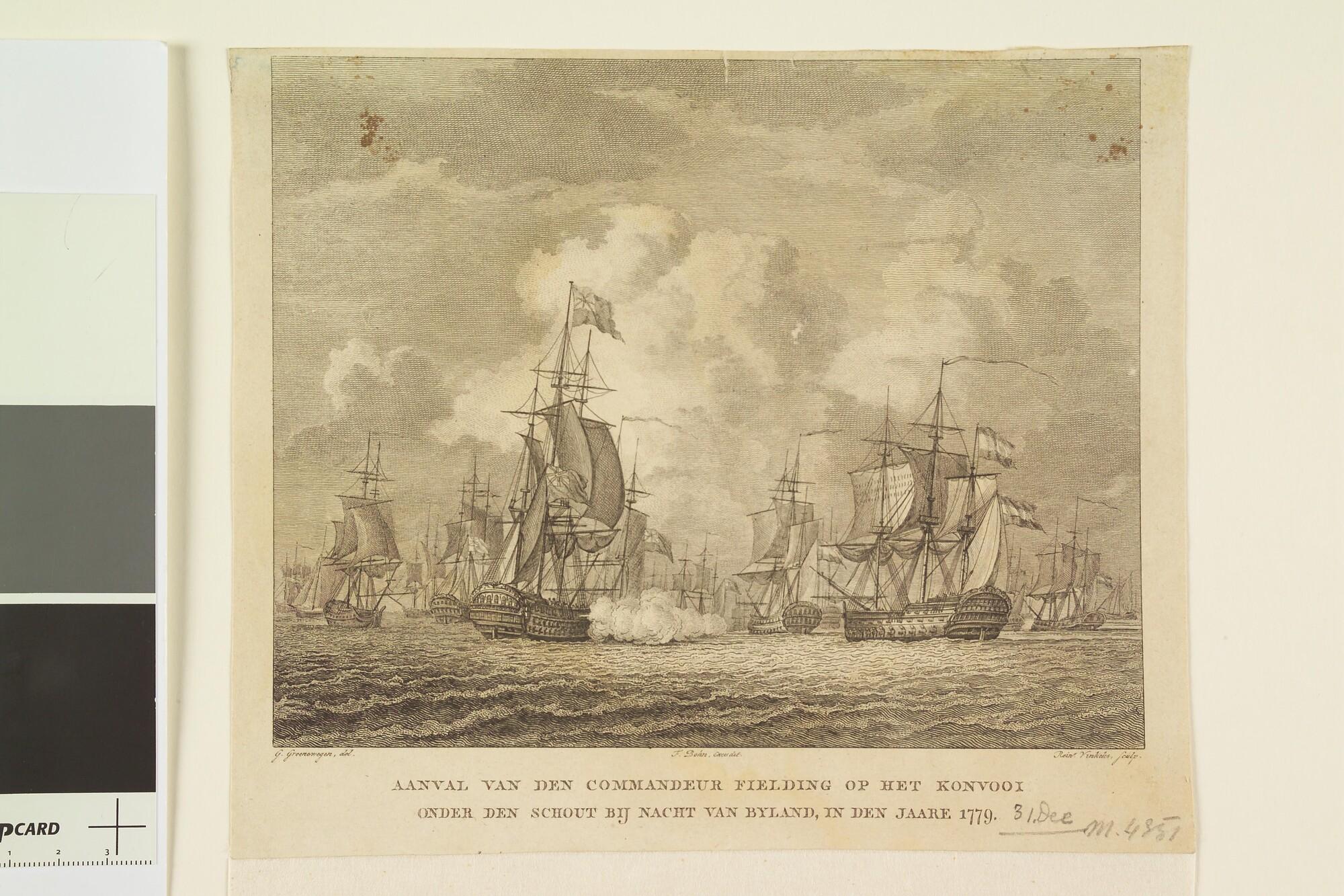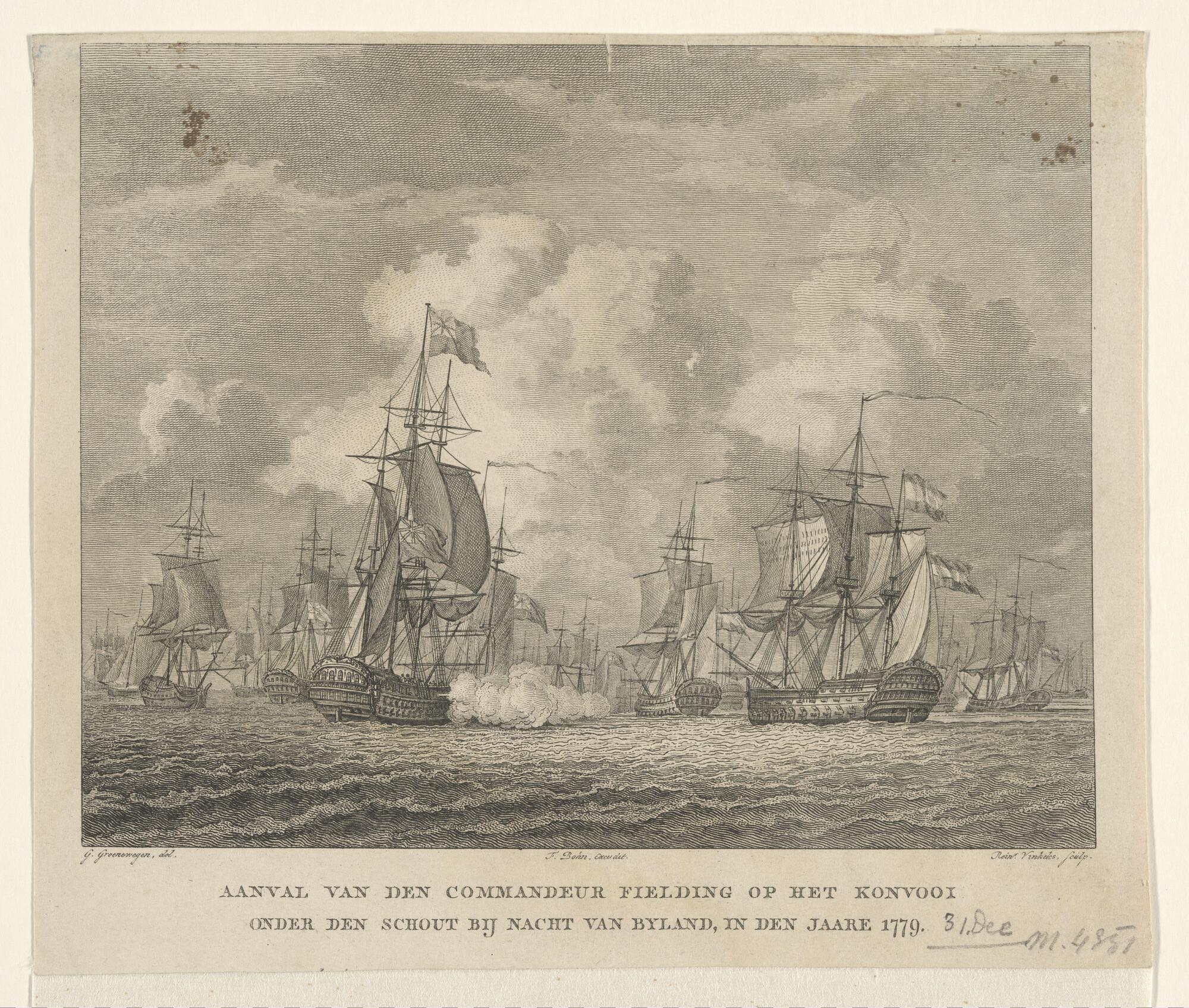 Aanval van de Engelse commandeur Fielding op een konvooi onder Schout-bij-Nacht Graaf van Bijland, 31 december 1779.