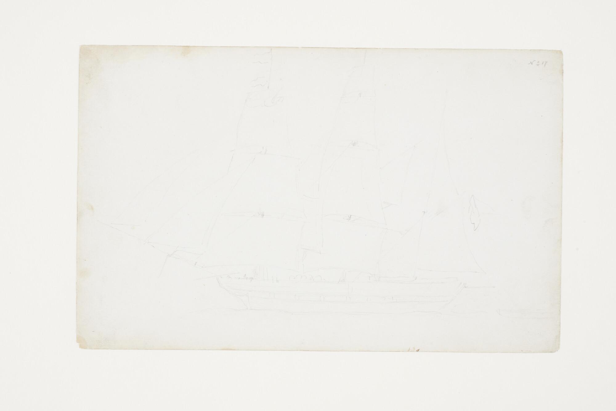 Een barkschip onder zeil.
