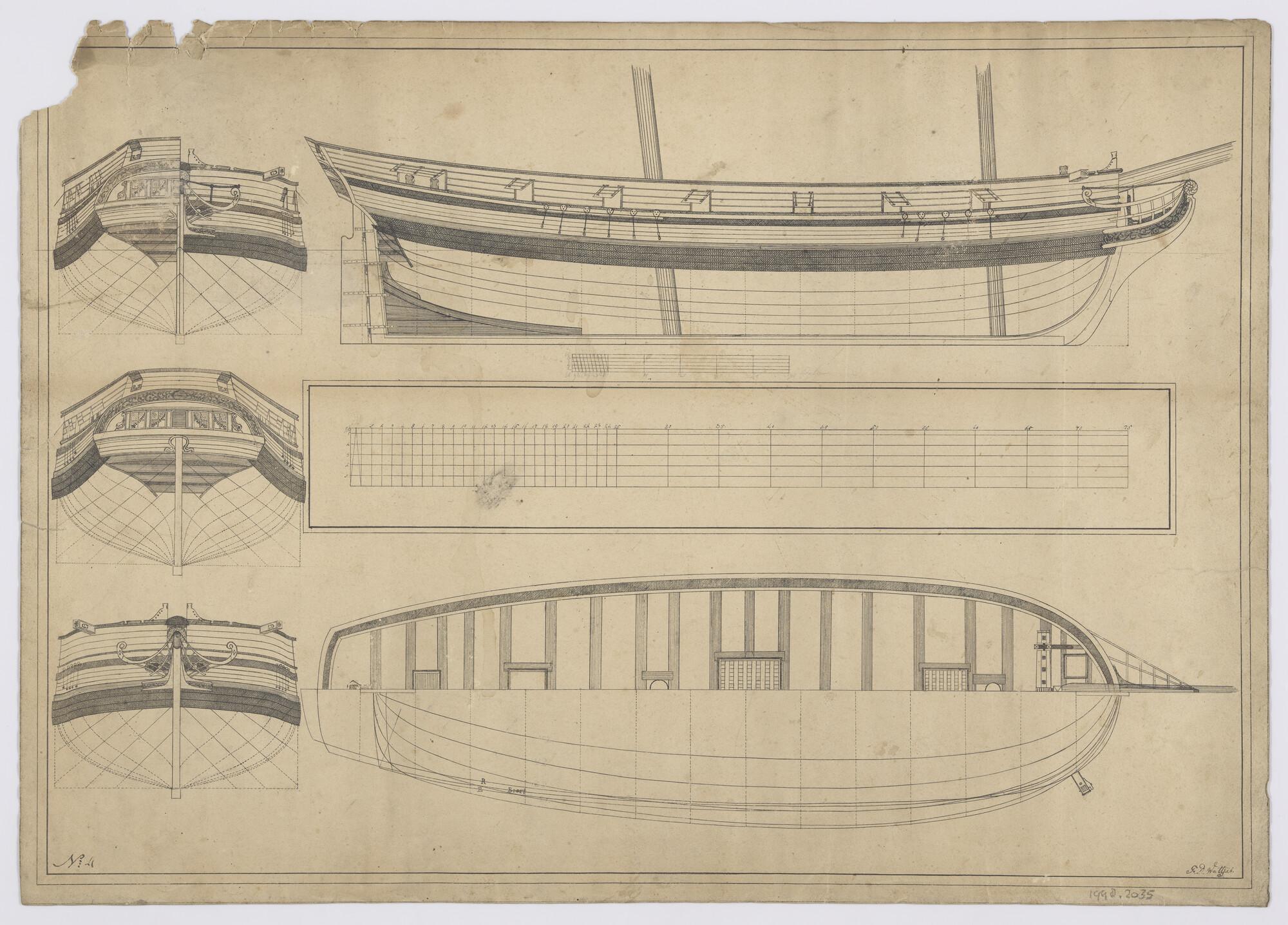 Algemeen- en lijnenplan van een tweemast brik.