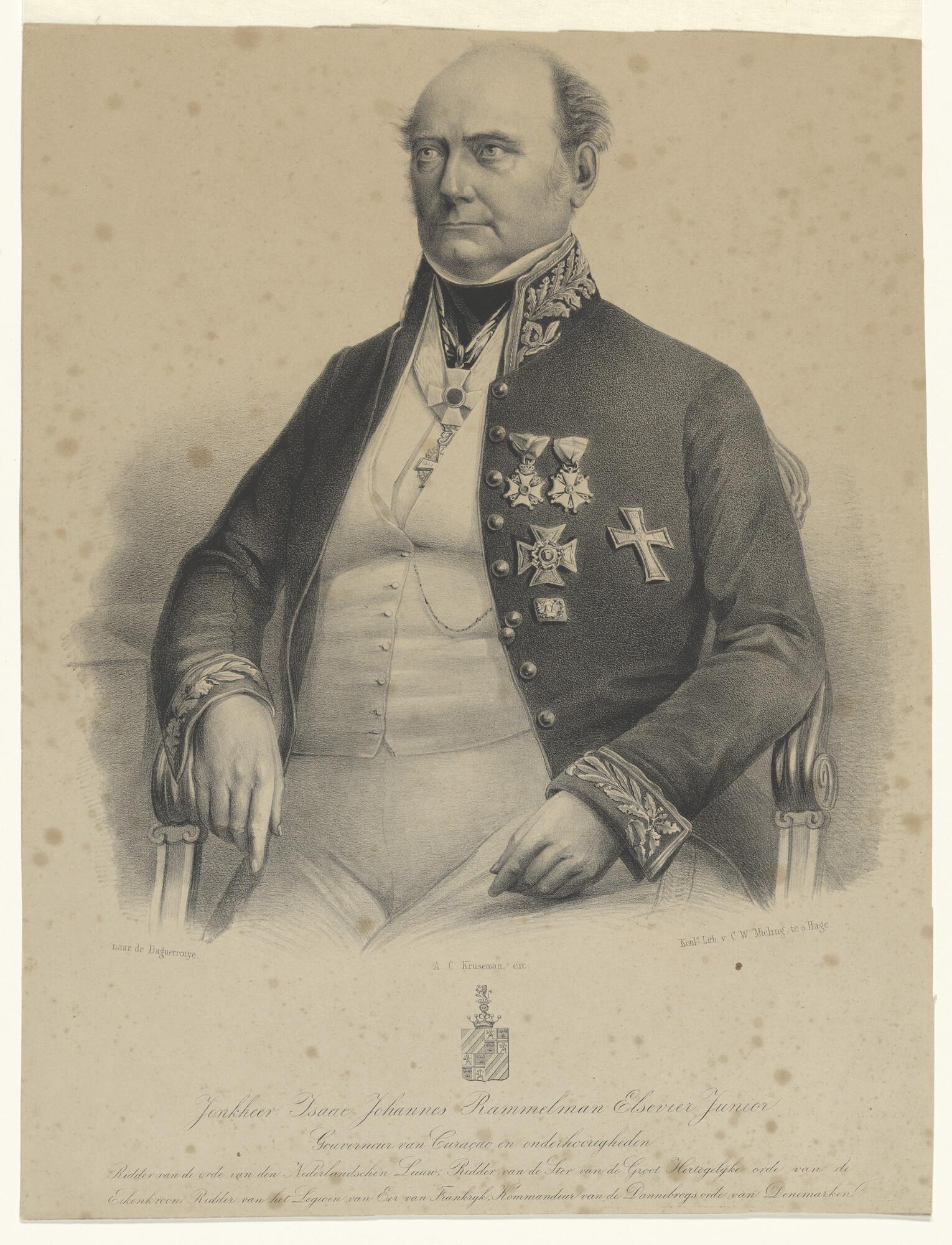 Portret van jonkheer Isaäc Johannes Rammelman Elsevier jr. (1802 - 1877), gouverneur van Curaçao van 1848 tot 1854.