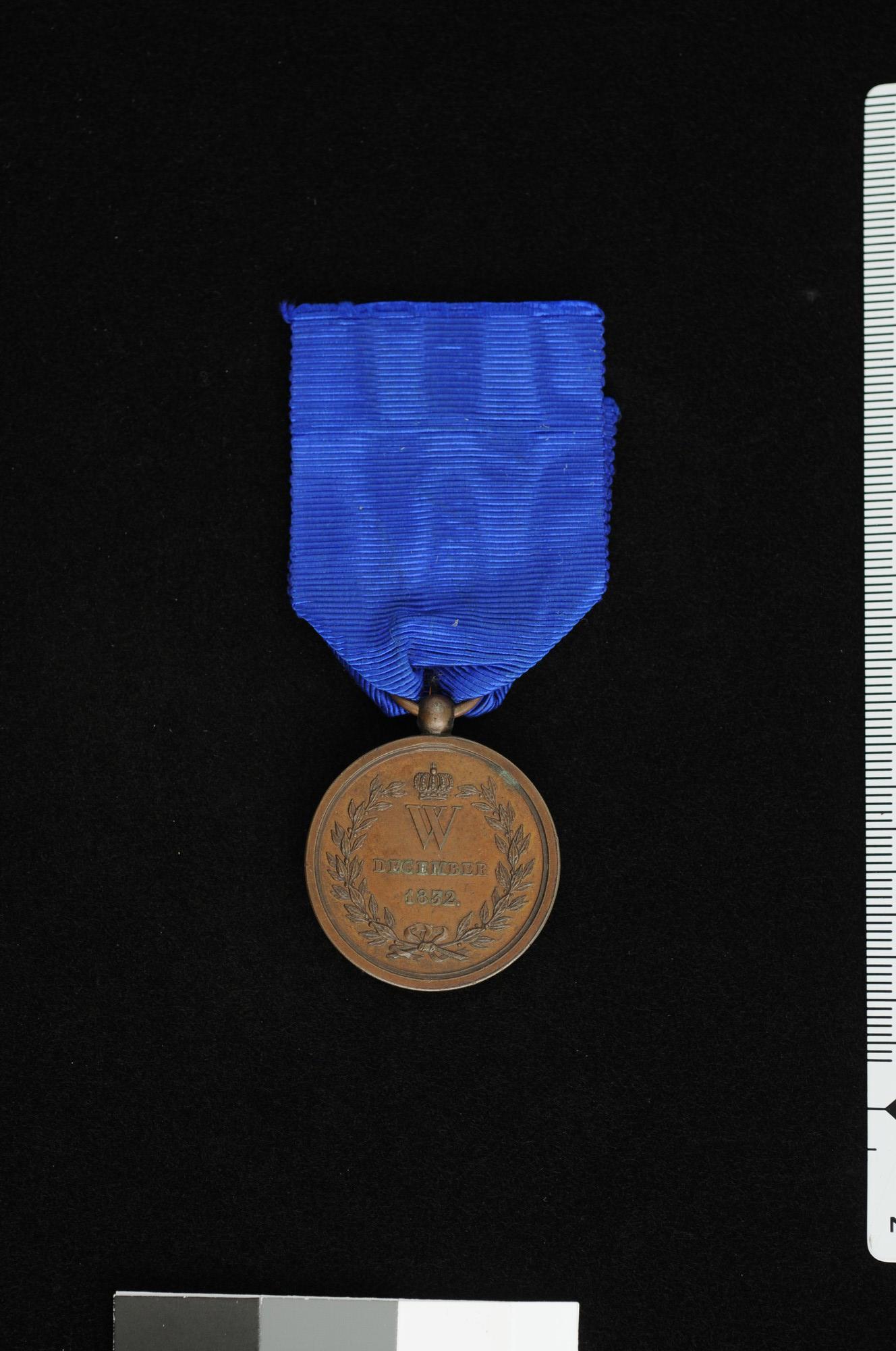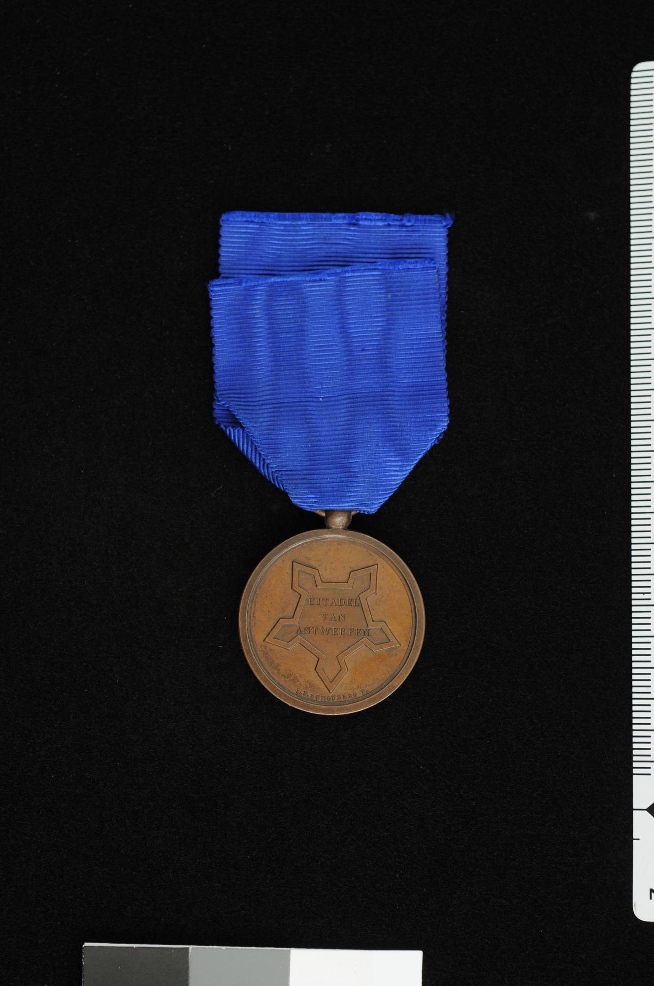 Antwerpsche medaille of Citadelmedaille, draagteken uitgereikt aan de verdedigers van de Citadel van Antwerpen in 1832, met blauw draaglint.