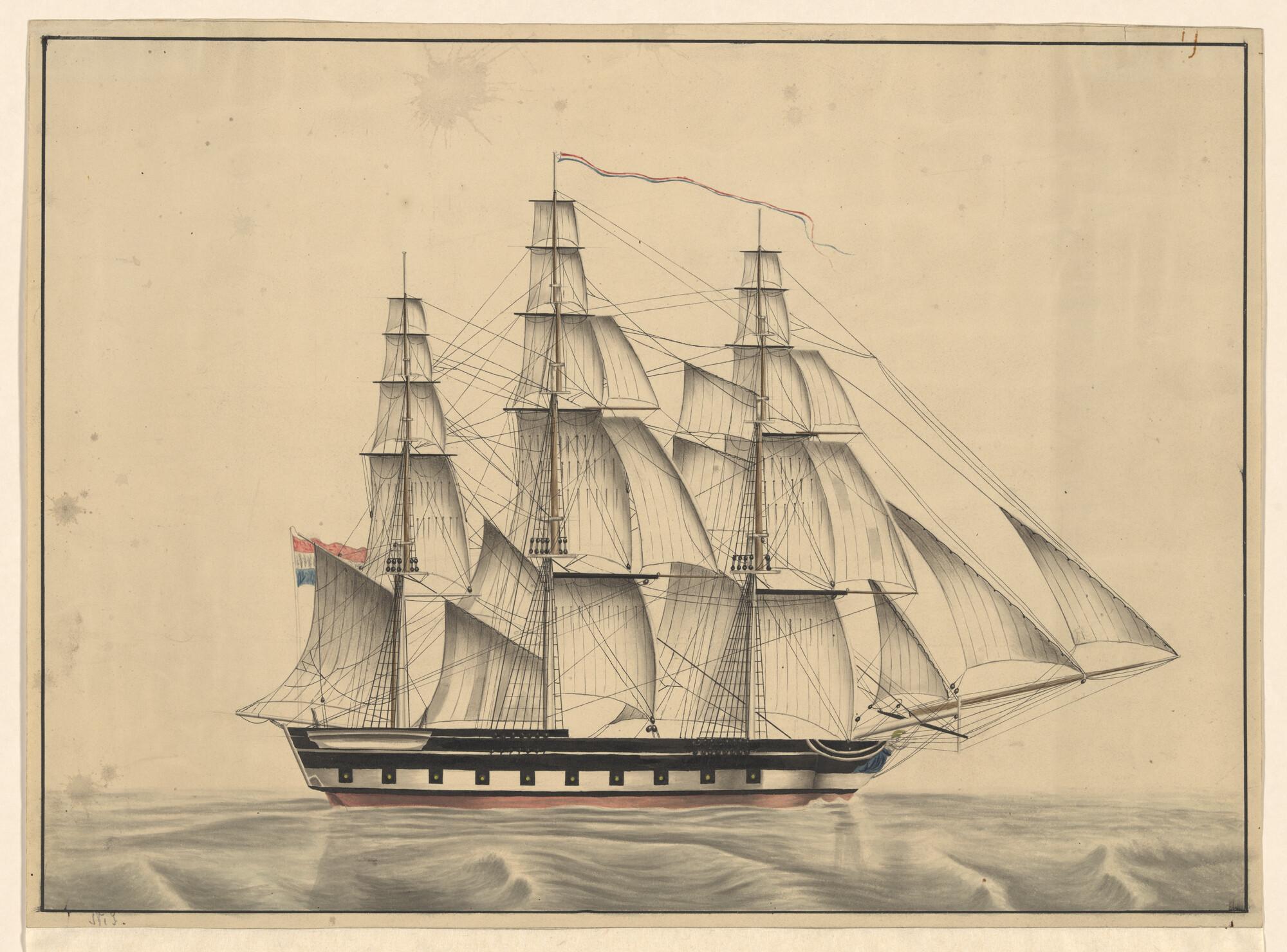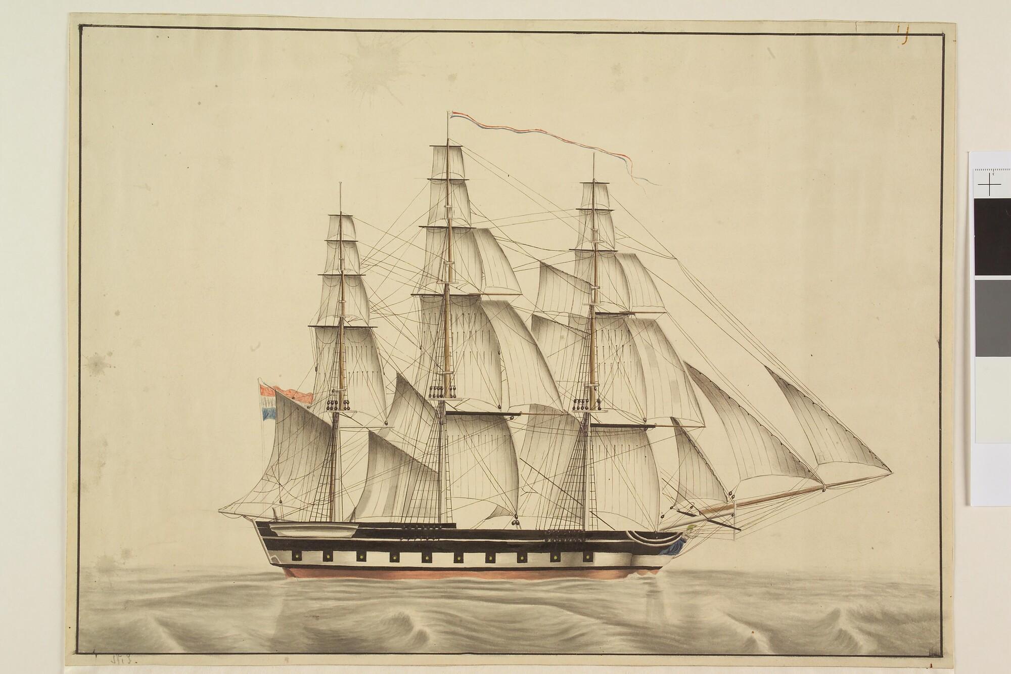 Een oorlogskorvet onder zeil