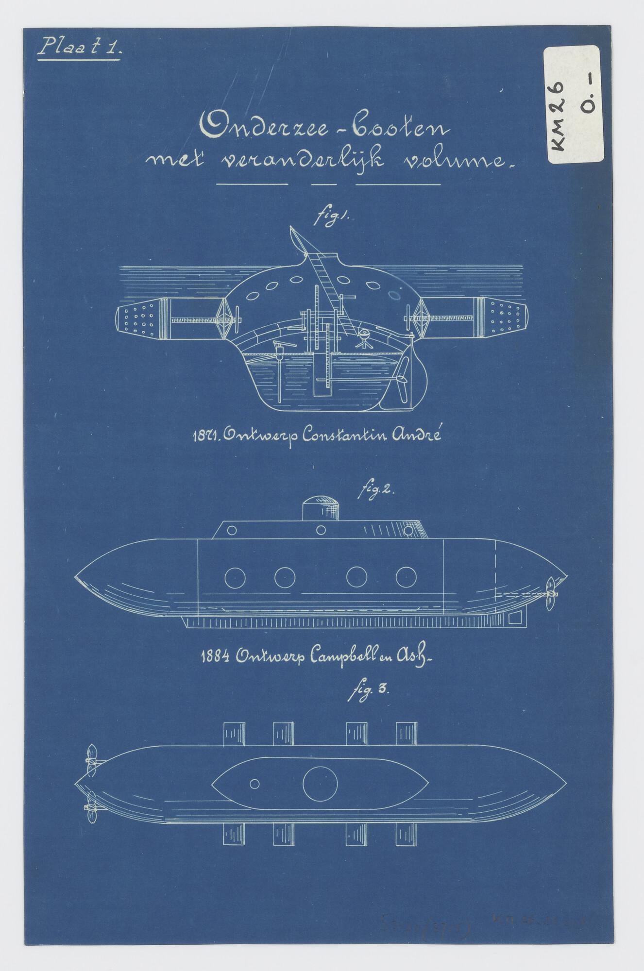 Buitenlandse onderzeeboot ontwerpen met verschillend volume [1871 en 1884]
