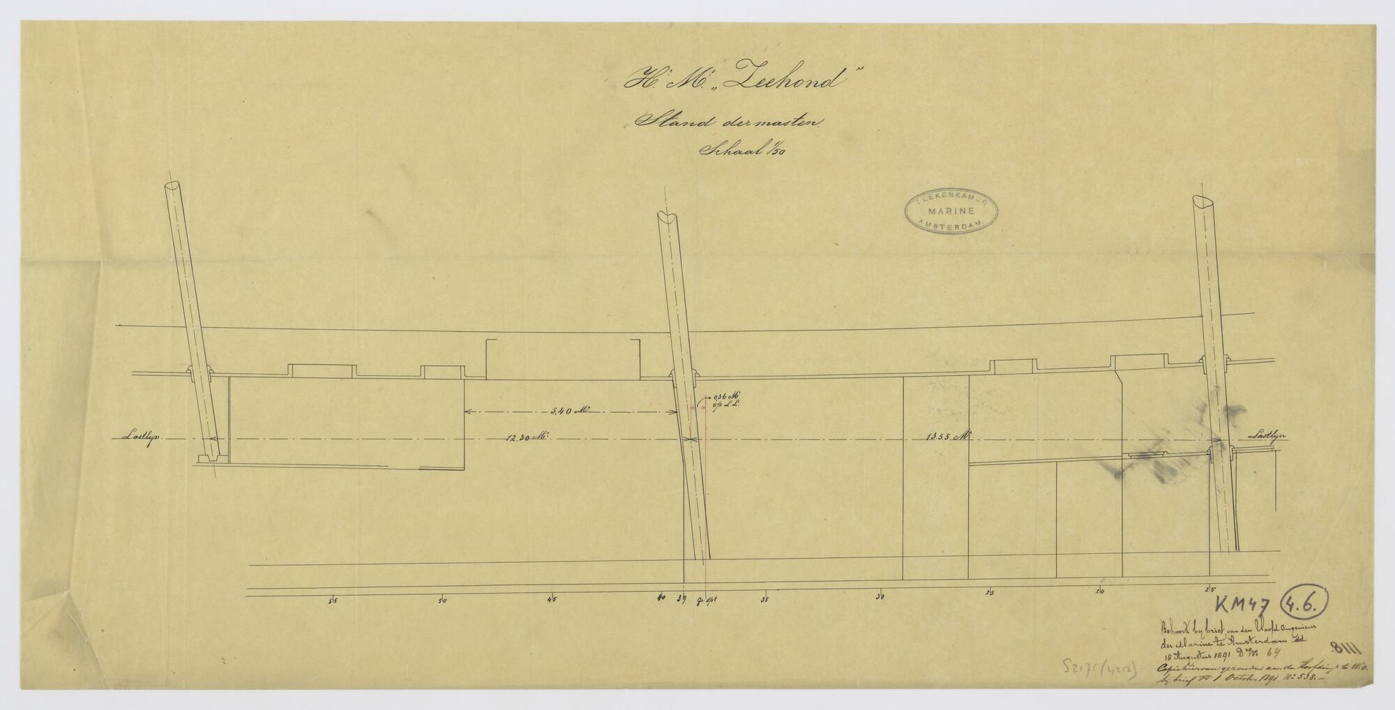 Stand der masten van Hr.Ms. 'Zeehond'