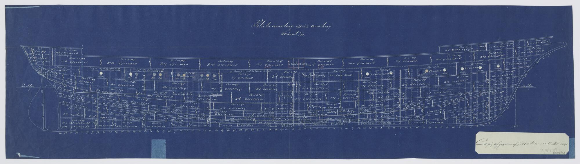Langsdoorsnede met huidplaten van Hr.Ms. 'Zeehond'