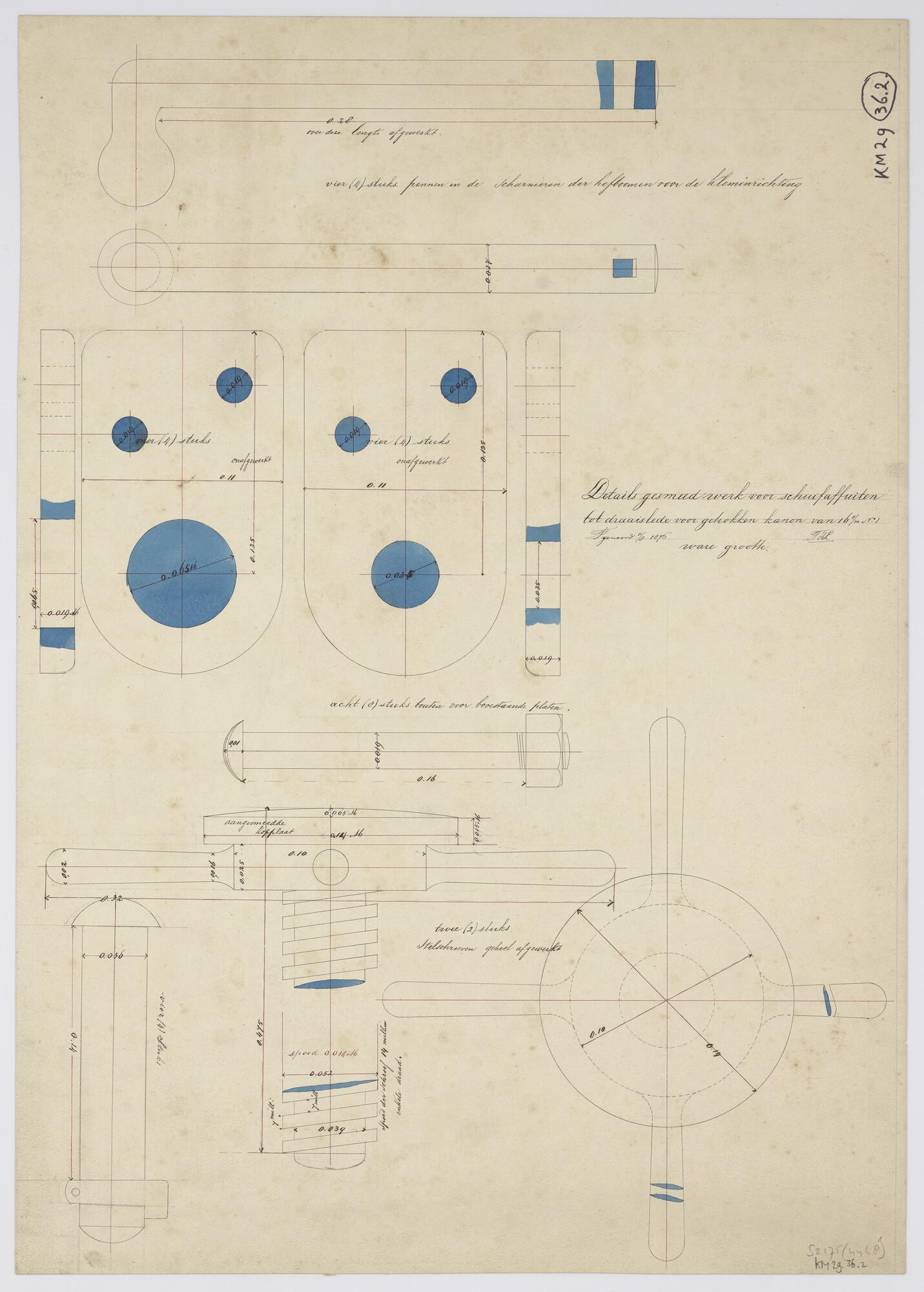 Doorsneden van details gesmeed werk voor schuifaffuiten tot draaislede voor getrokken kanon van 16 cm No 1 (schaal 1:1).