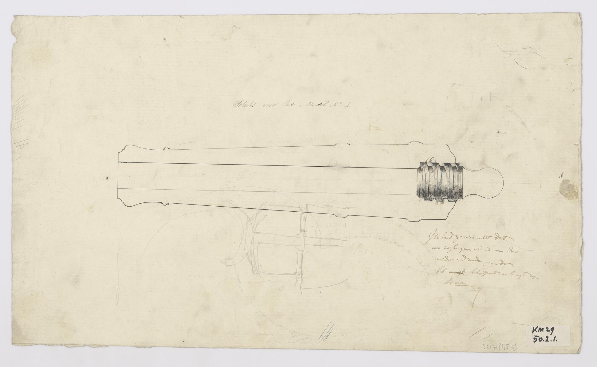 Verticale langsdoorsnede van een kanon model no 4 met sluitstuk met trekken en velden van 1½ gang.