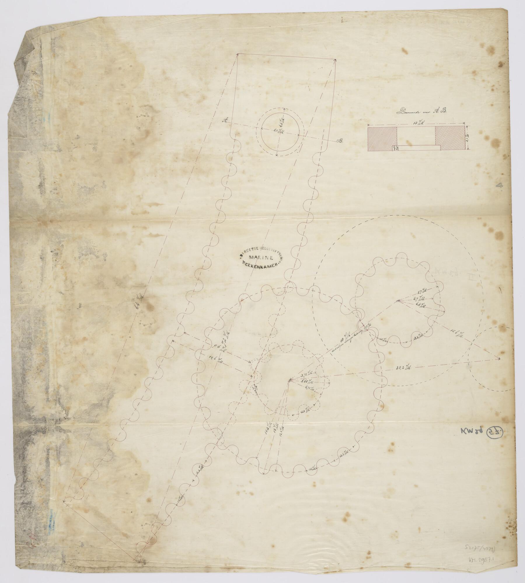 Het elevatietoestel ontworpen door luitenant ter zee der eerste klasse C.H. Bogaert (1835 - 1892) en aangebracht in de toren aan boord van het ramschip Zr.Ms. 'Buffel'.