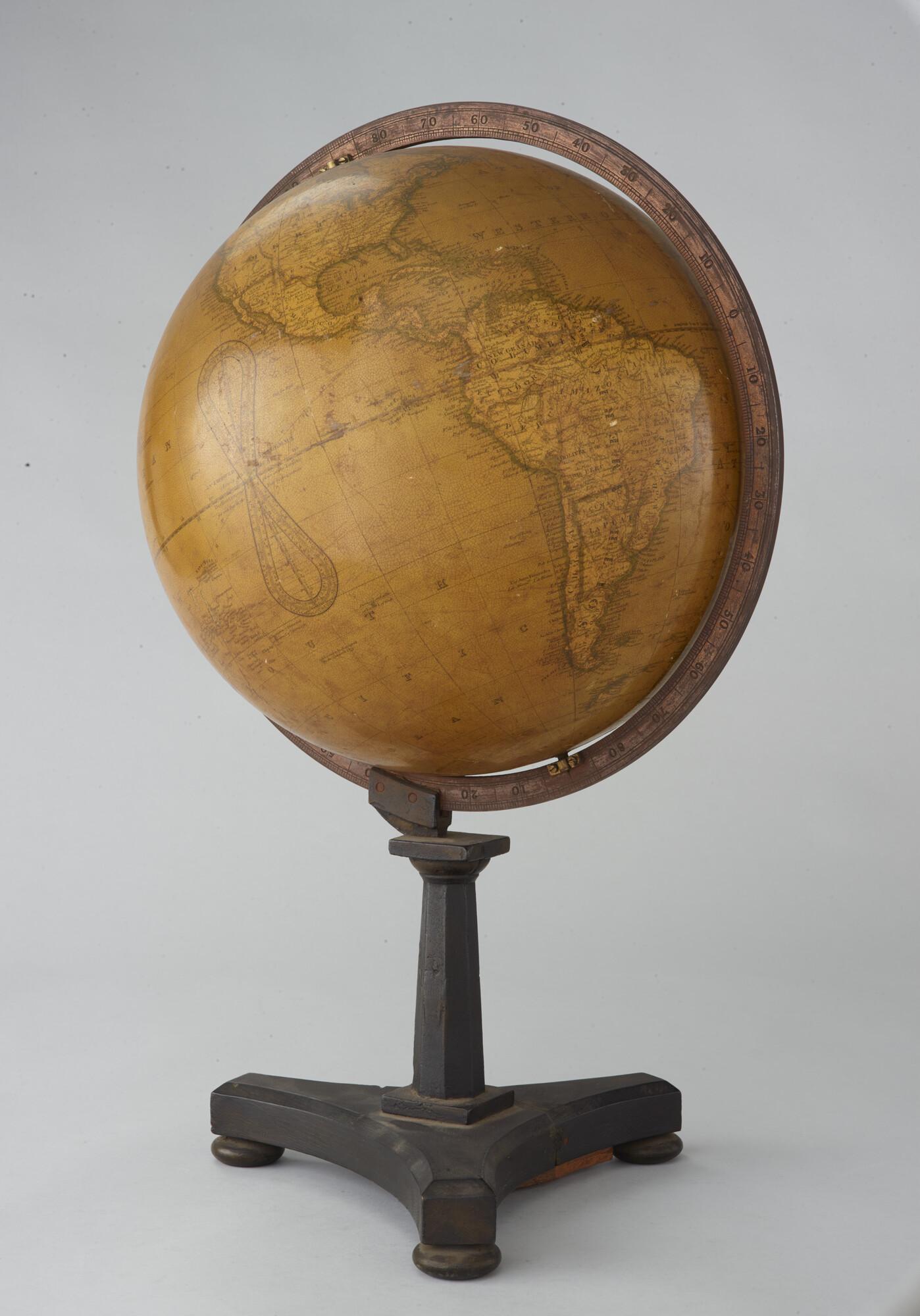Aardglobe van 38 cm door Newton and Son te Londen uit 1865.