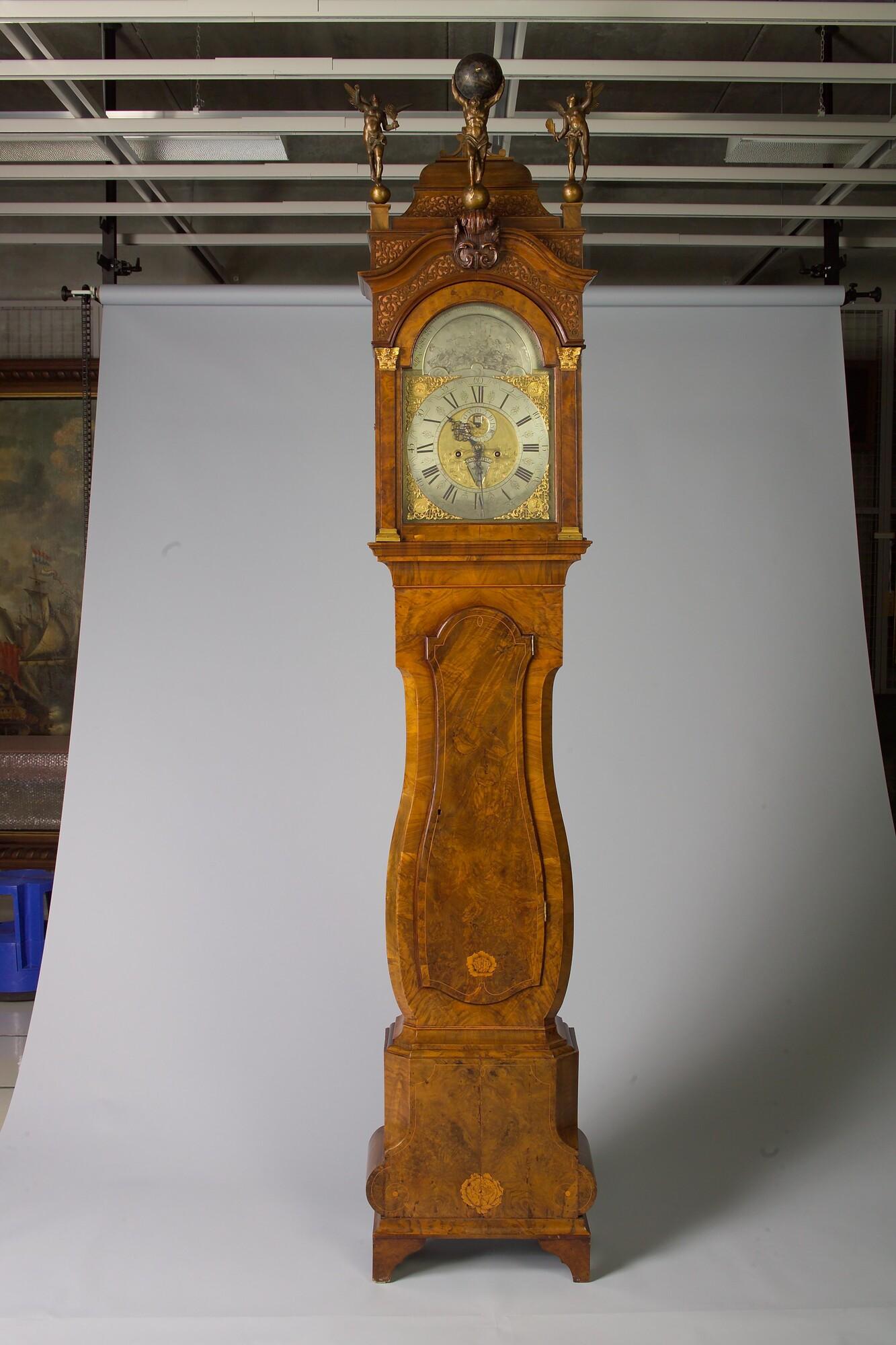 Staand horloge van de Haagse klokkenmaker Barend Oortkras uit het midden van de achttiende eeuw, in een Haagse kast. Het uurwerk bevat een extra wijzer, een getijdenaanwijzer voor een aantal havens van Frans-Vlaanderen tot de Duitse bocht. De wijzer geeft de standen van hoogwater aan voor de plaatsen – in volgorde - Medemblik, Duinkerken, Enkhuizen, ...