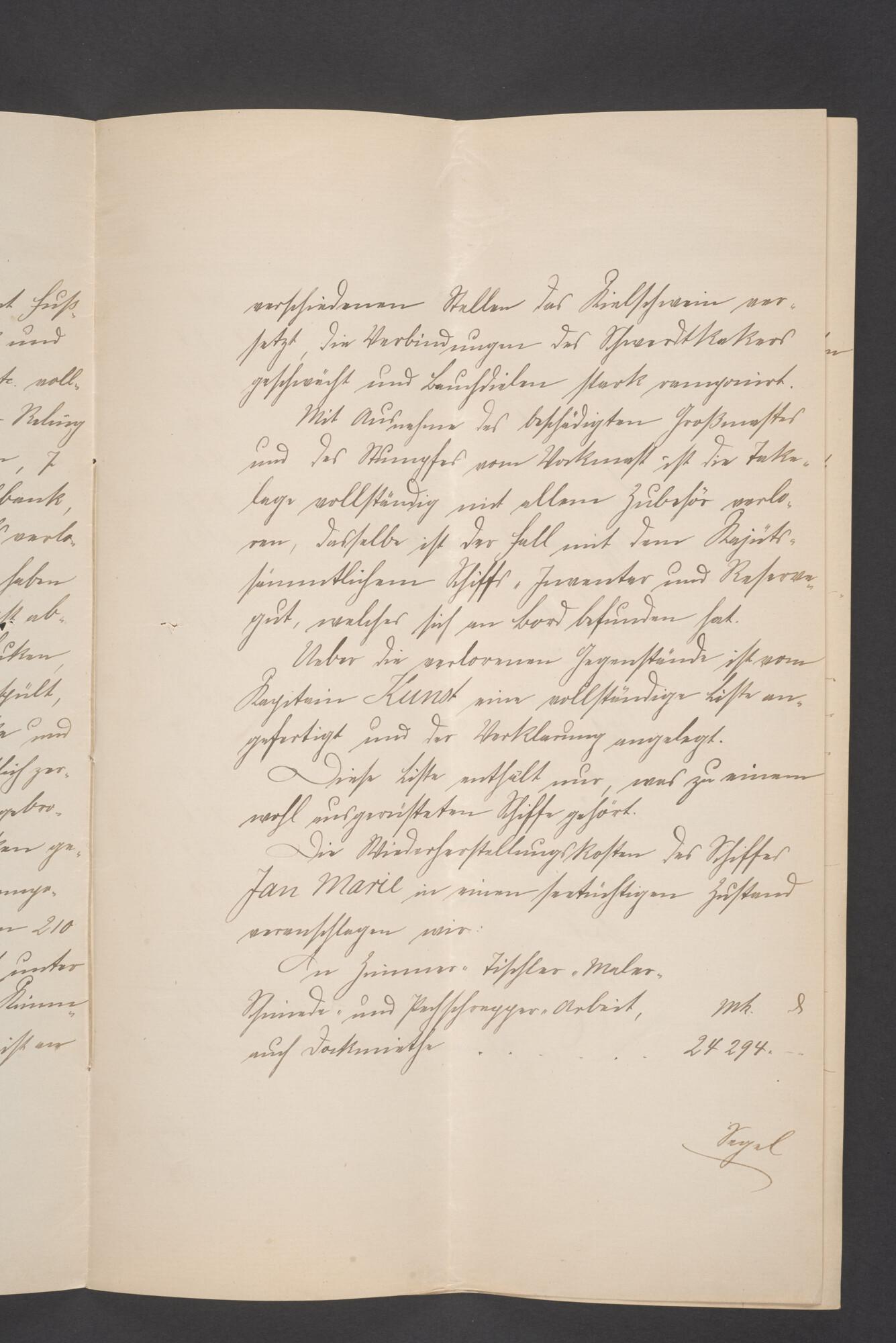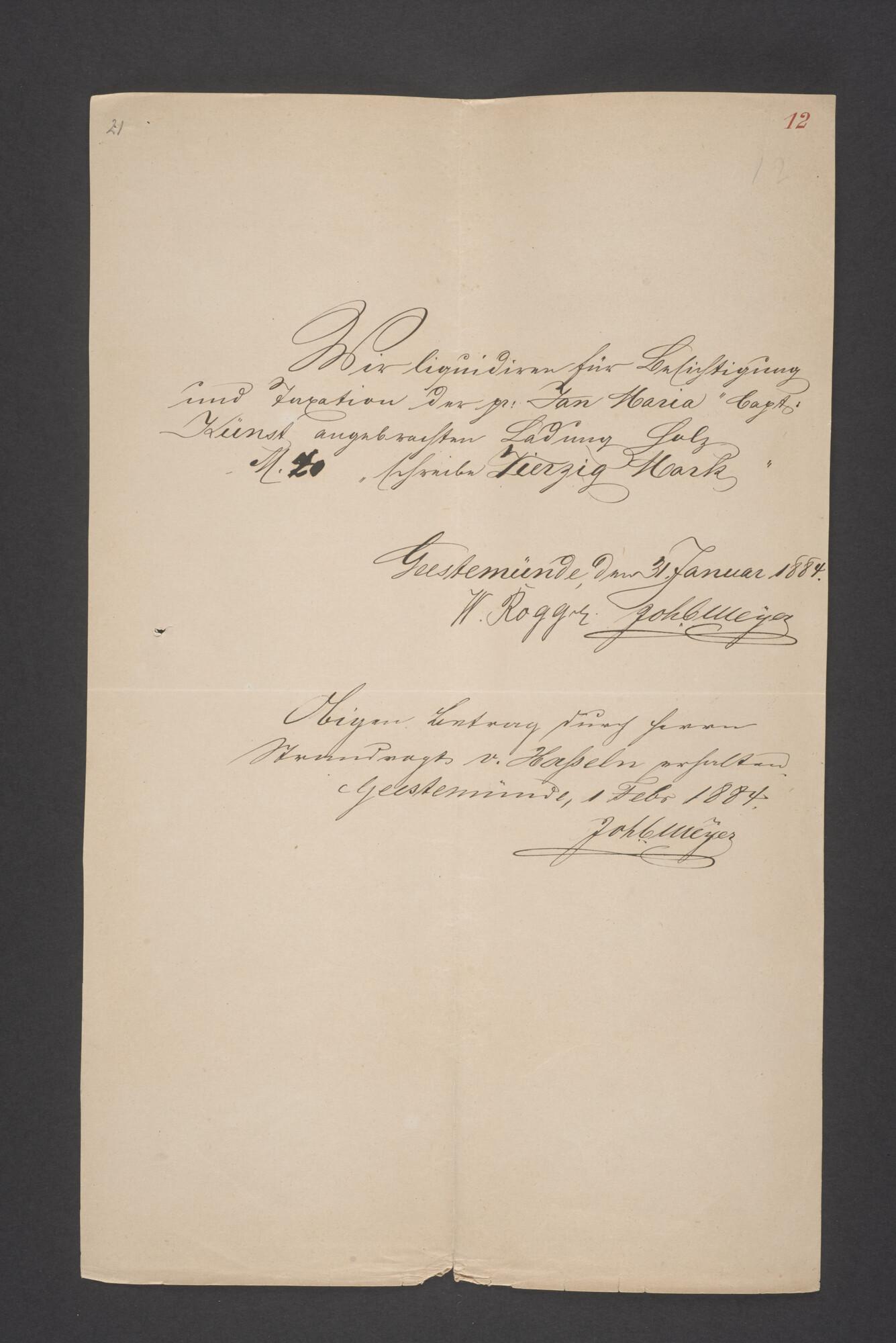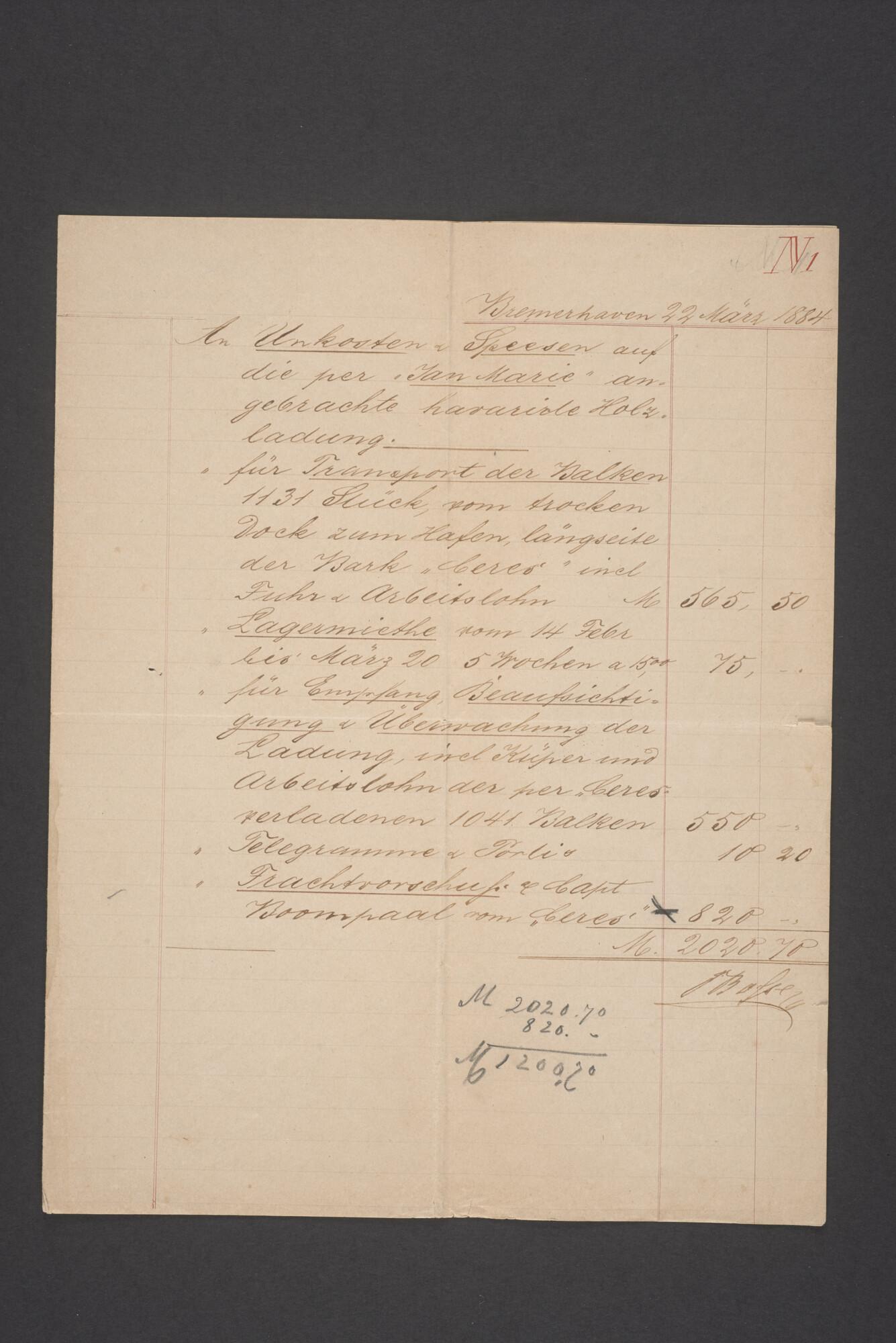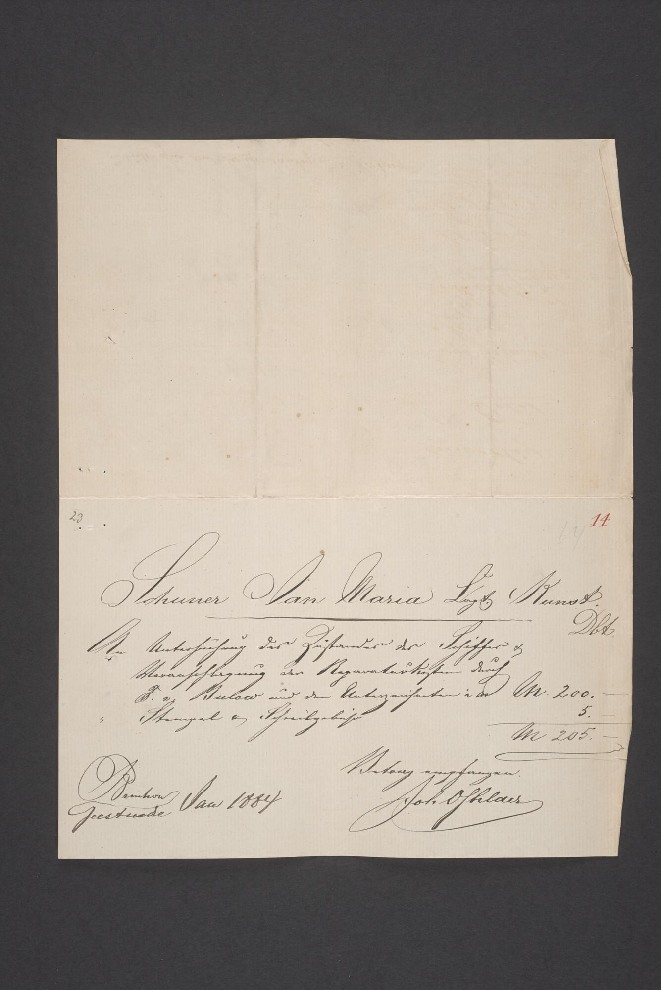 Bewijsstukken behorend bij het Reglement van Averijen over het vaststellen van de schade opgelopen aan het Nederlandse 3/m schoenerschip 'Jan Maria' gevoerd door Kapitein J. D. Kunst op de reis van Riga naar het Nieuwediep verlaten binnengebracht te Geestemünde.