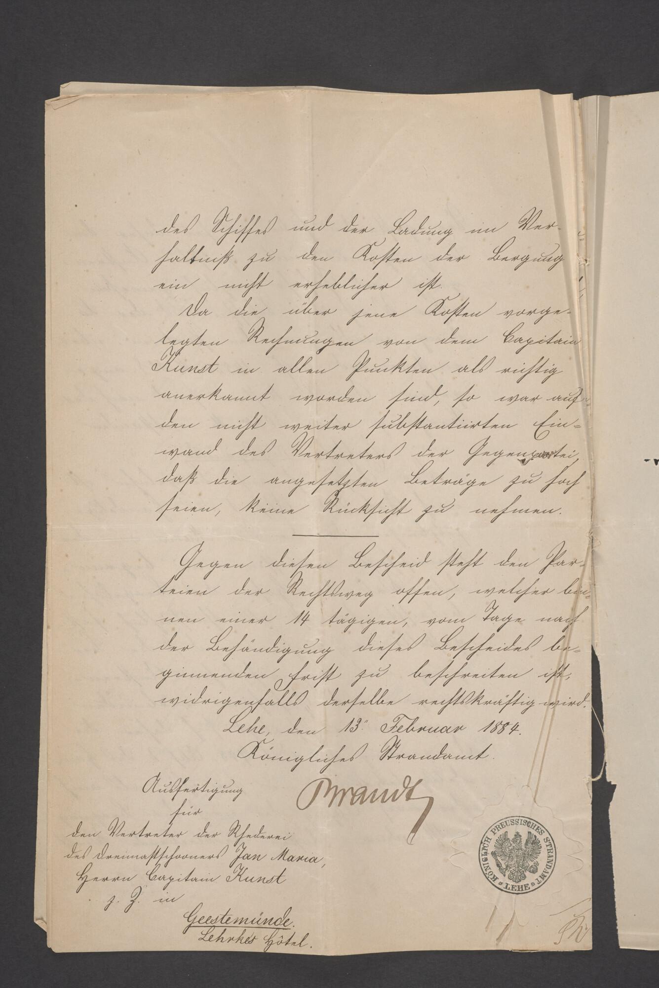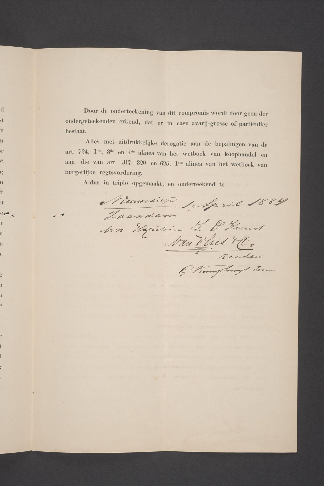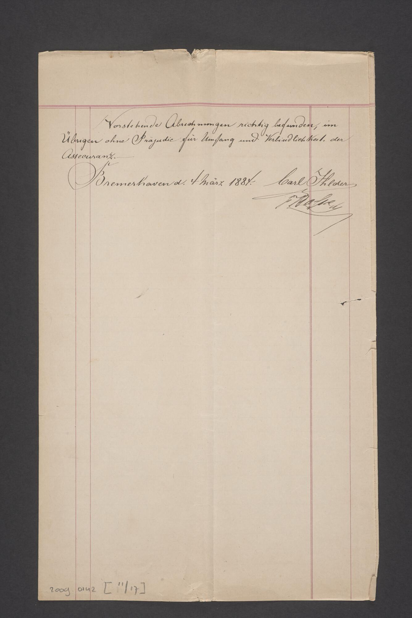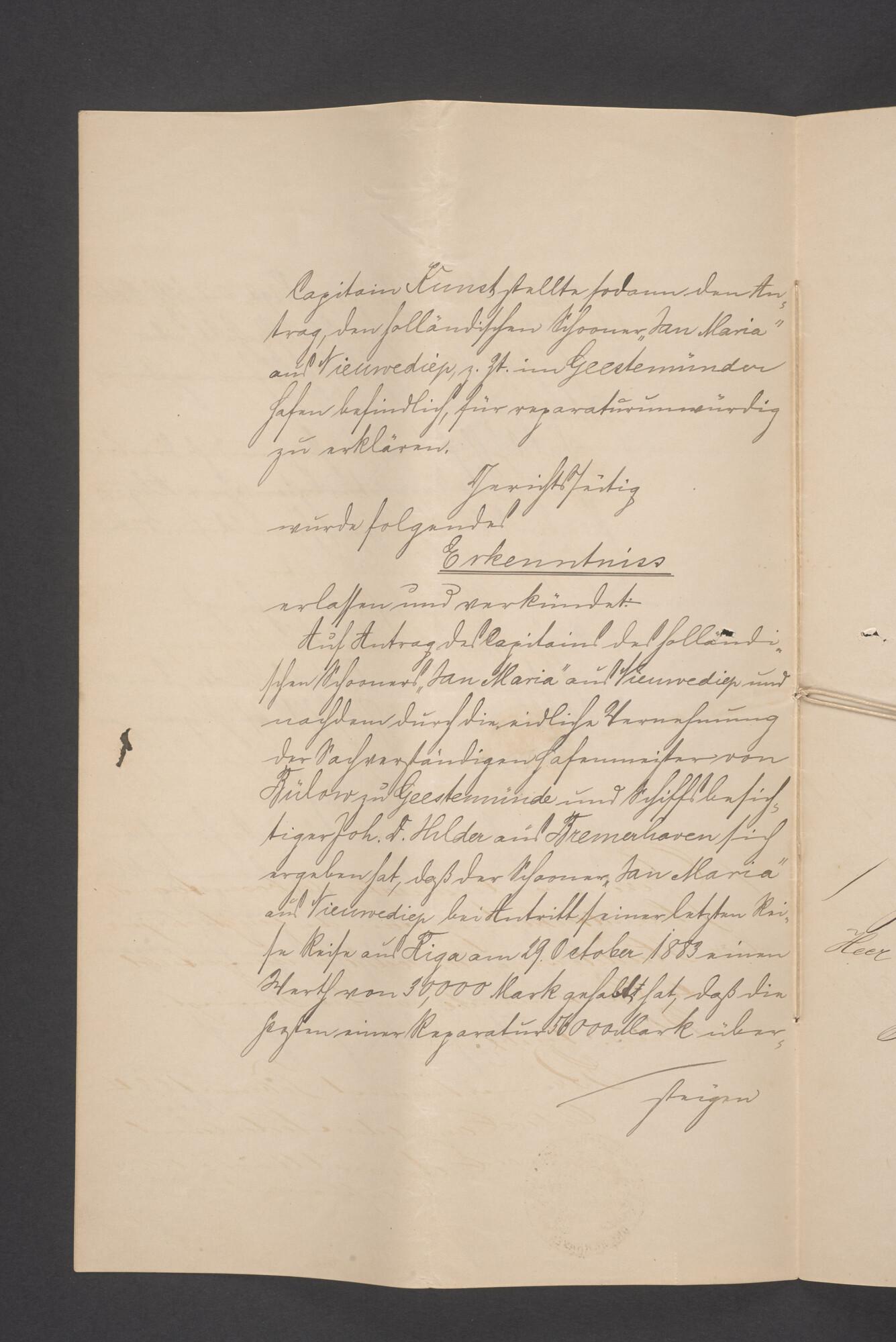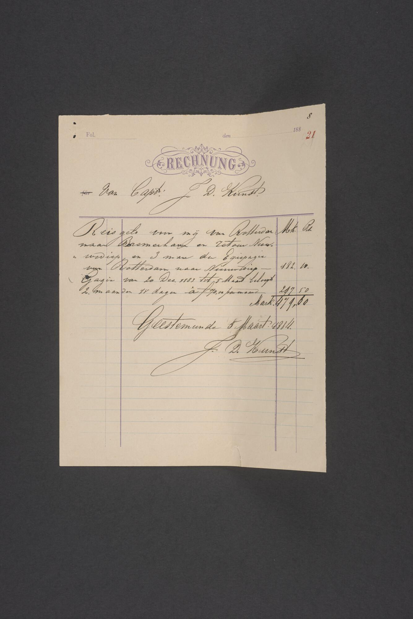 Bewijsstukken behorend bij het Reglement van Averijen over het vaststellen van de schade opgelopen aan het Nederlandse 3/m schoenerschip 'Jan Maria' gevoerd door Kapitein J. D. Kunst op de reis van Riga naar het Nieuwediep verlaten binnengebracht te Geestemünde.
