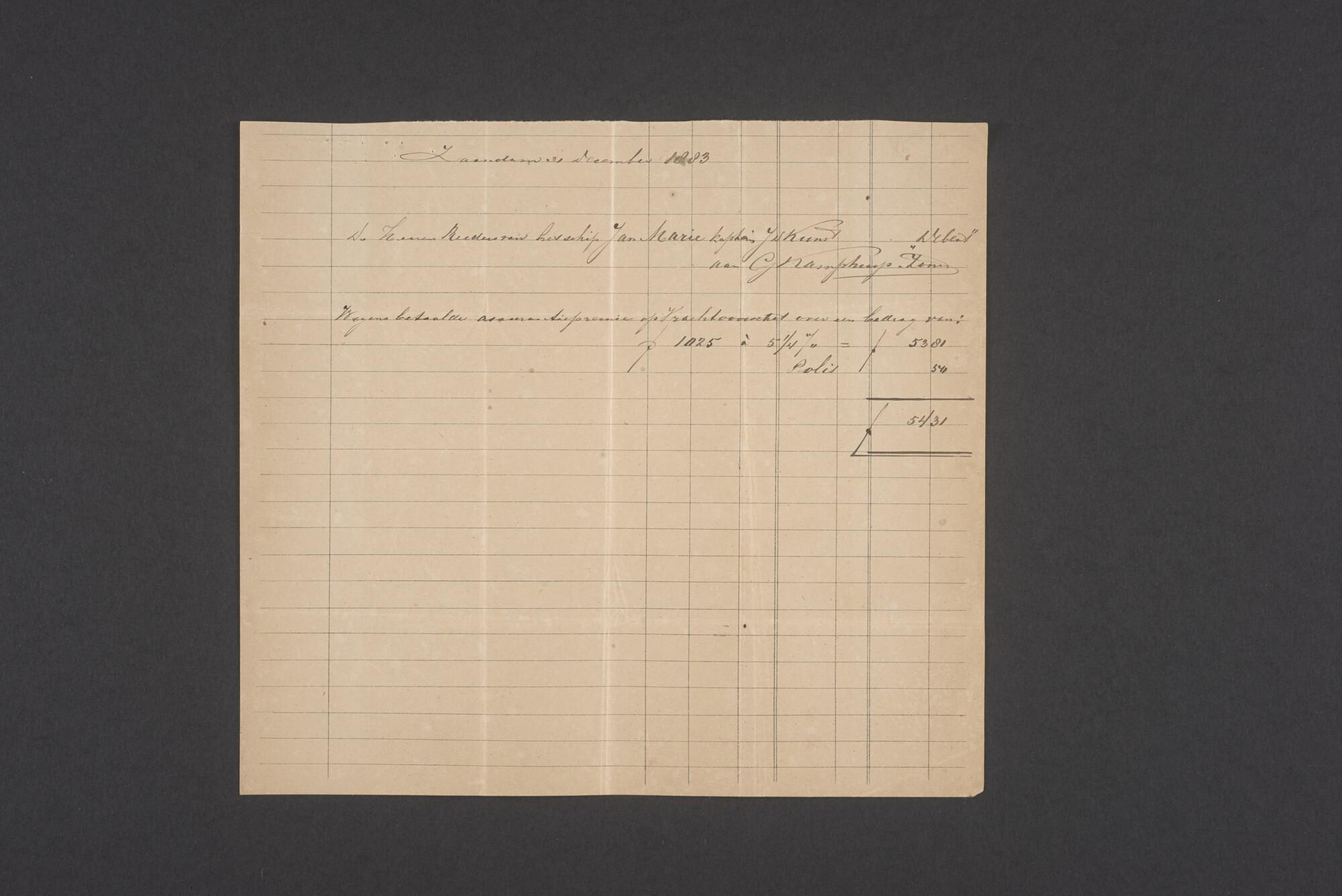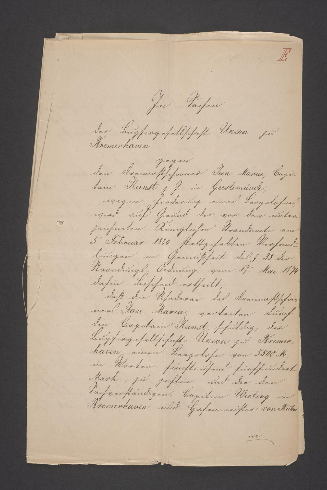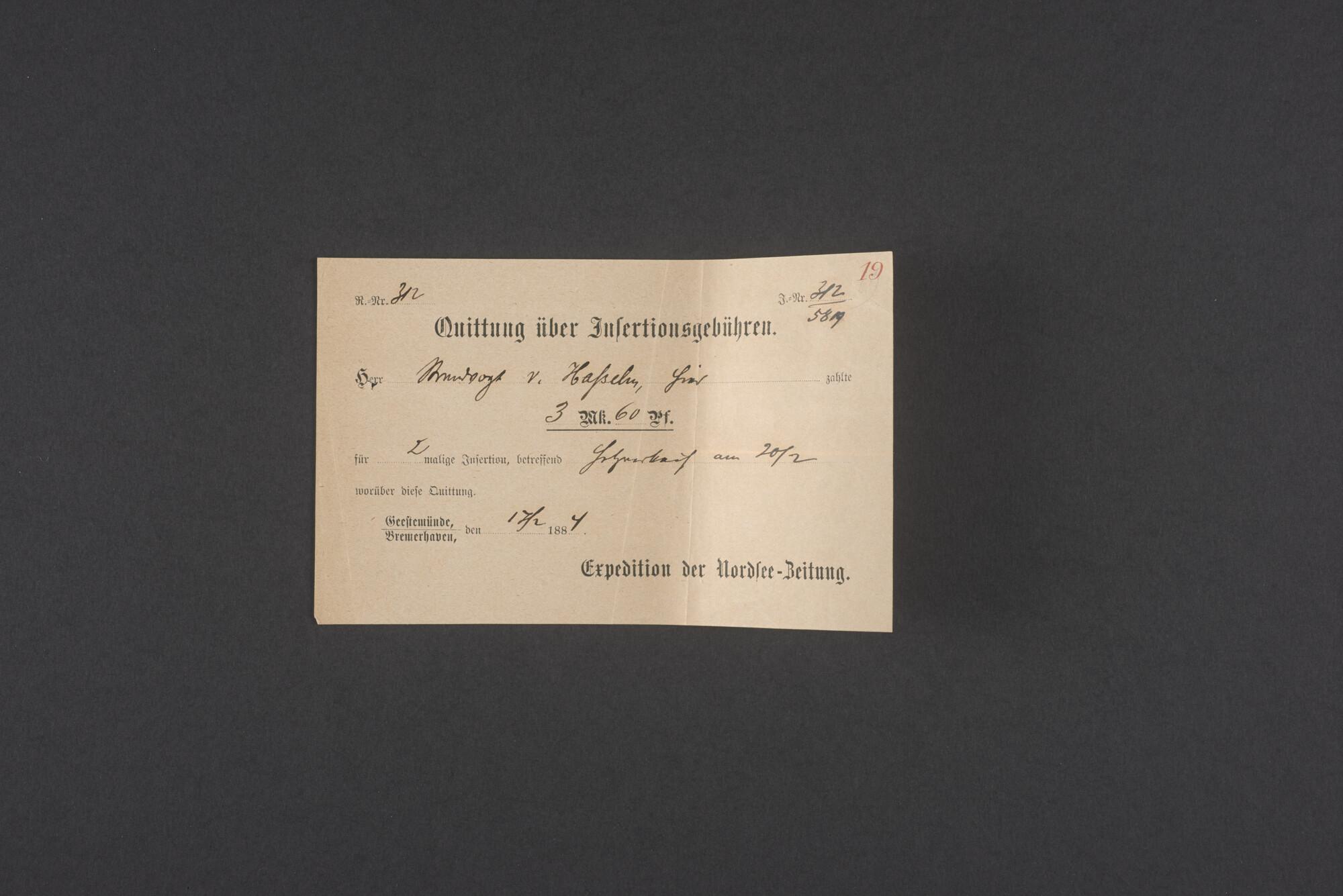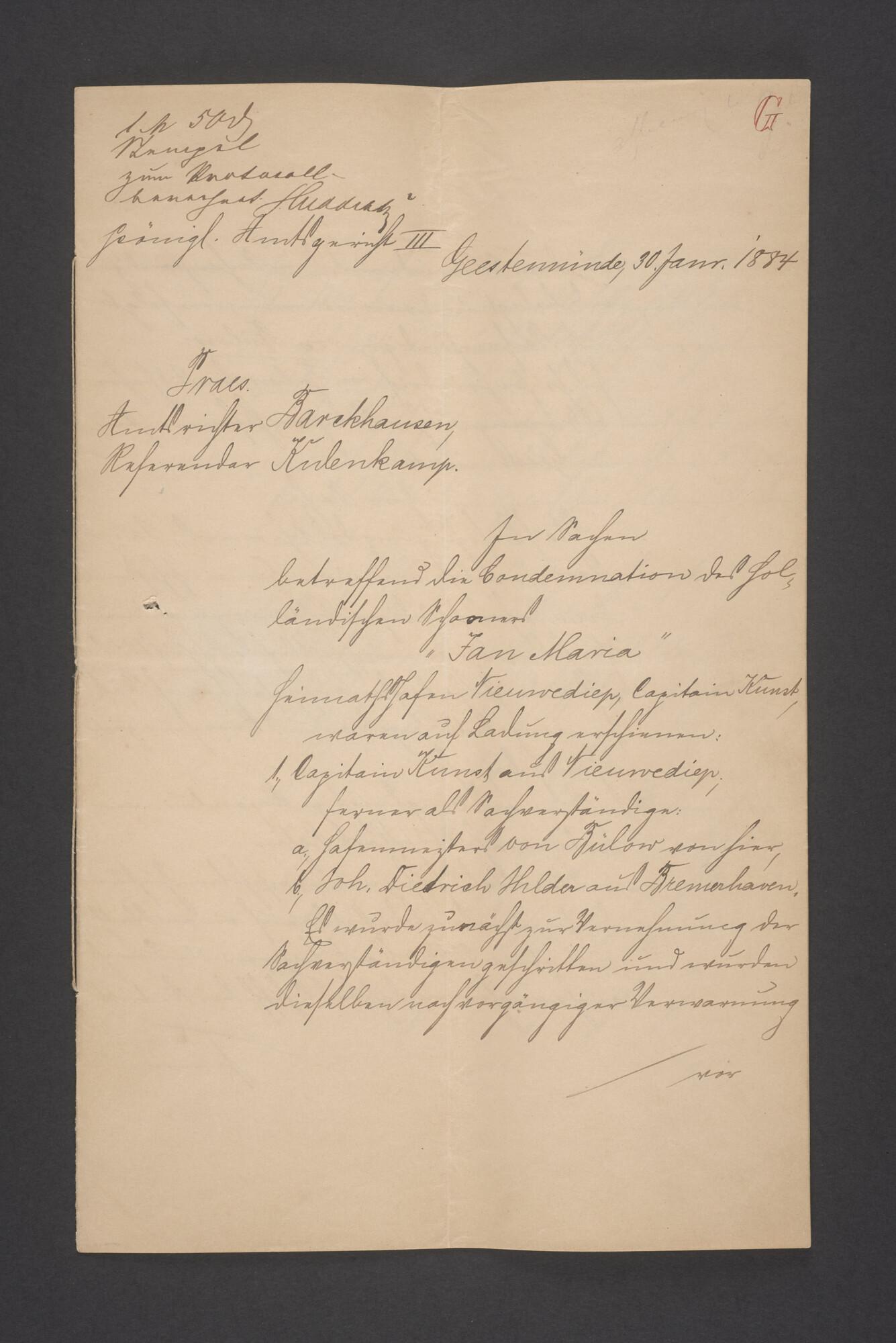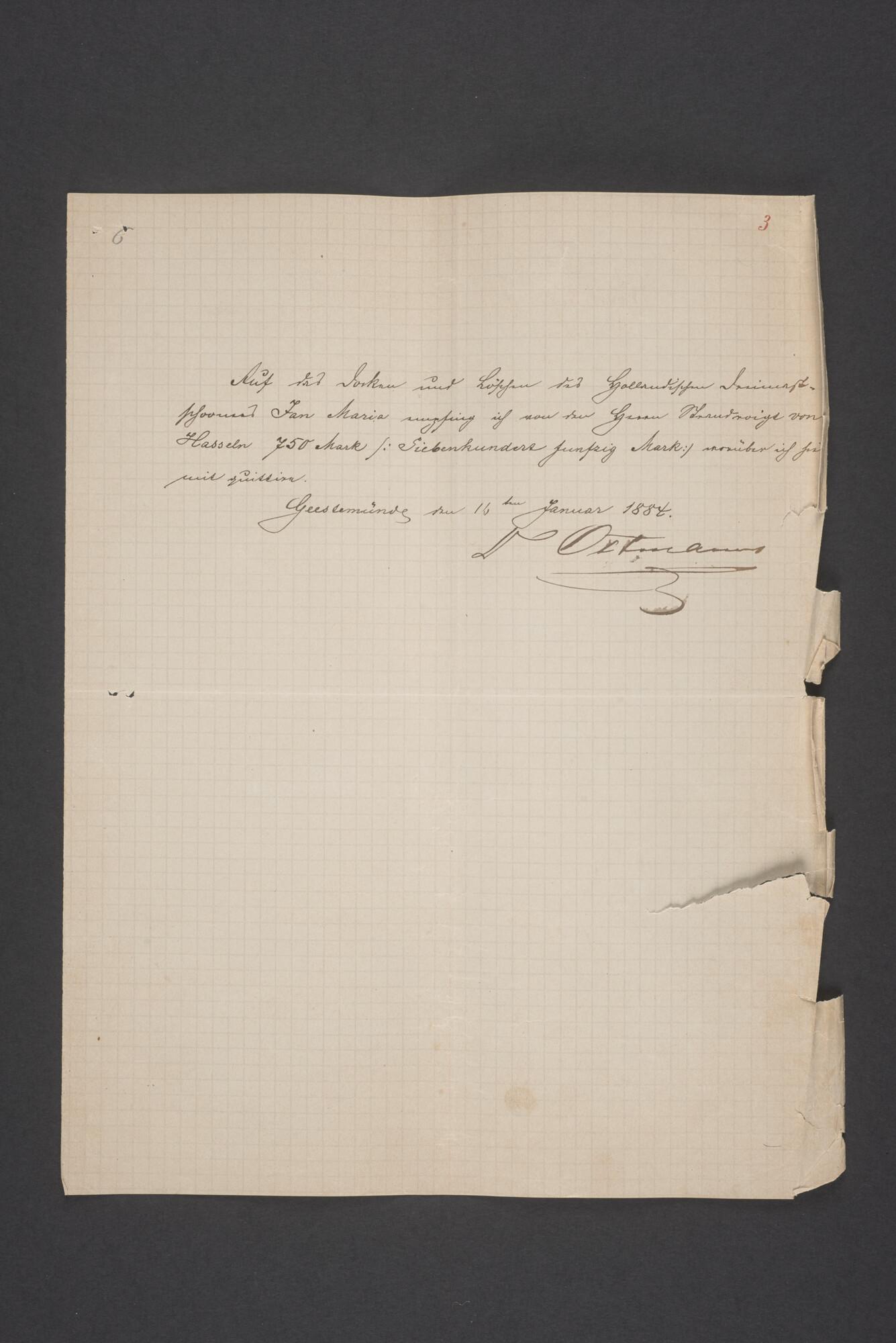 Bewijsstukken behorend bij het Reglement van Averijen over het vaststellen van de schade opgelopen aan het Nederlandse 3/m schoenerschip 'Jan Maria' gevoerd door Kapitein J. D. Kunst op de reis van Riga naar het Nieuwediep verlaten binnengebracht te Geestemünde.