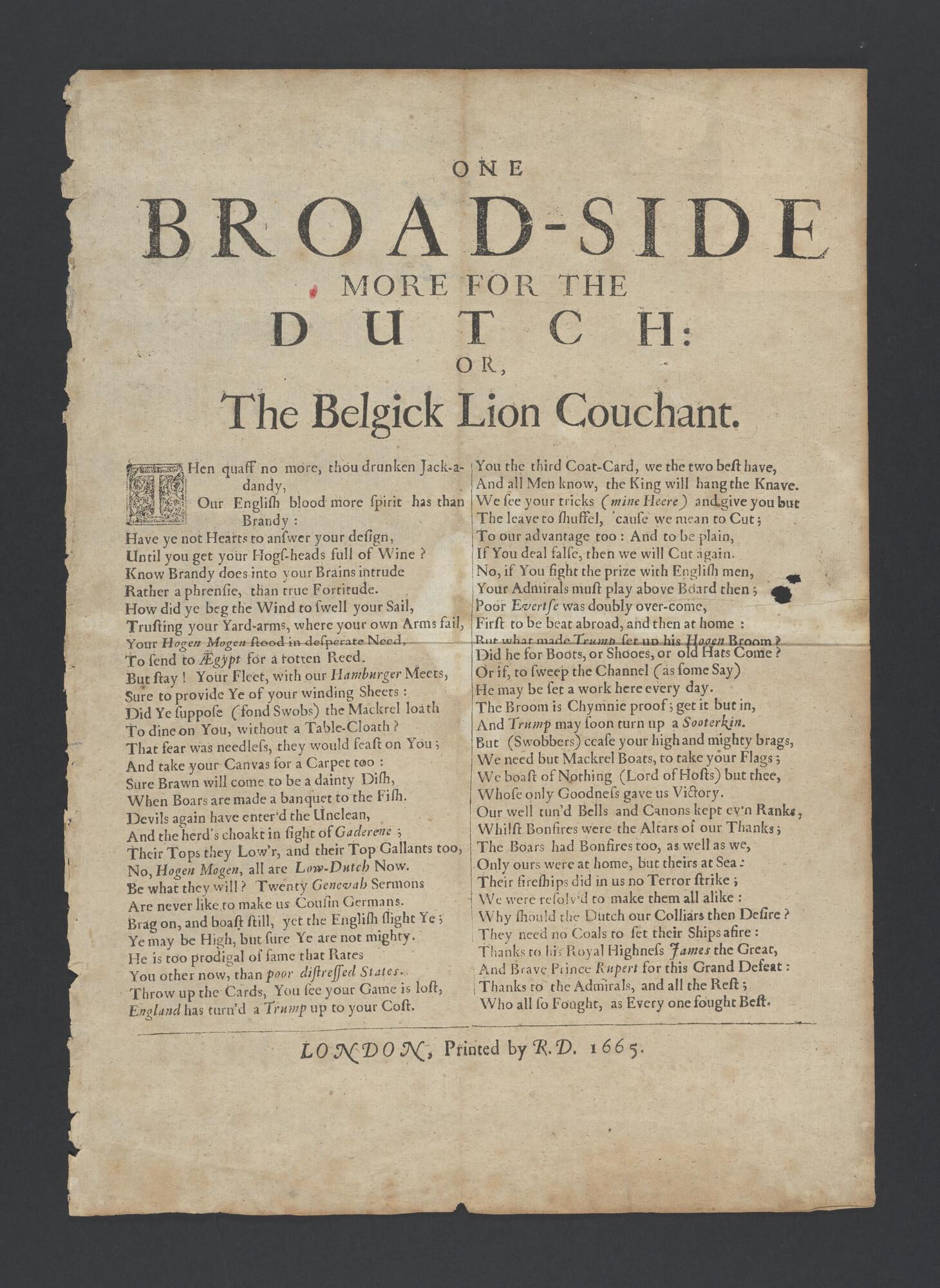 Engels smaadschrift op de Hollanders na de slag bij Lowestoft.