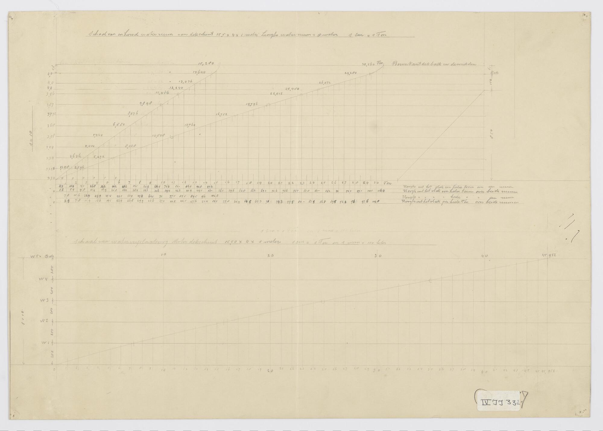 Schaal inhoud waterruim van een dekschuit.