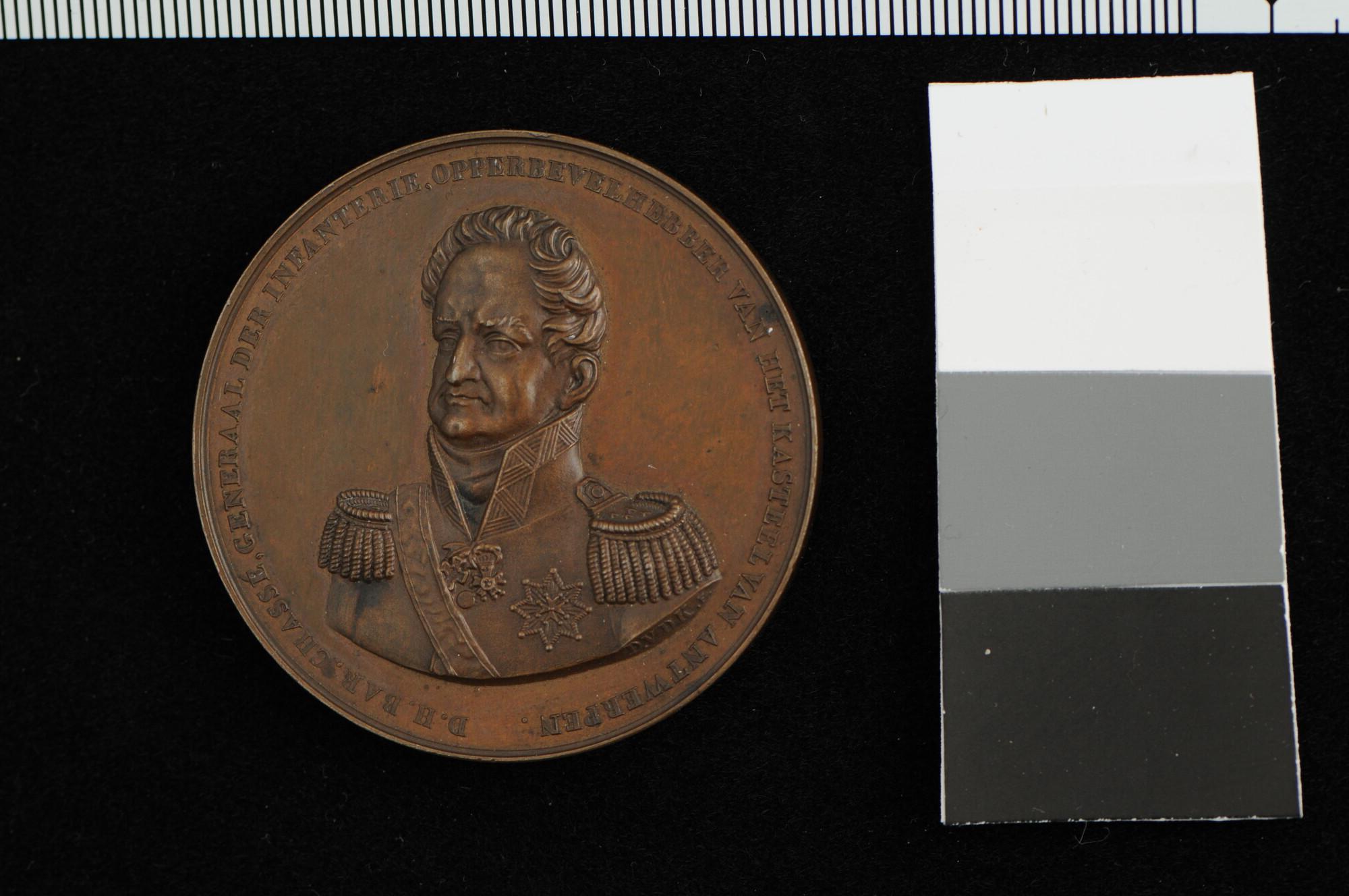 Bronzen penning op de verdediging van de citadel van Antwerpen van 30 november tot 23 november 1832. Met borstbeeld van generaal van de infanterie D.H. baron Chassé.
