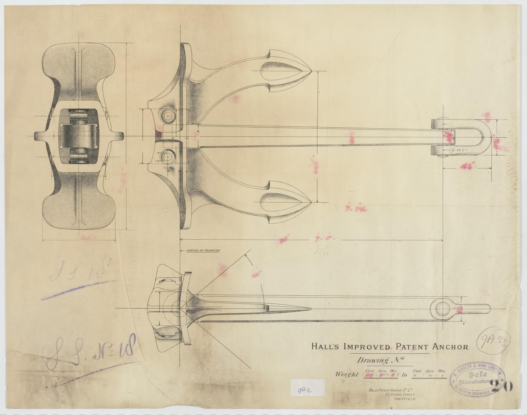 Hall's improved patent anchor van het vrachtschip ss. Madura voor de Stoomvaart-Maatschappij Nederland (SMN).