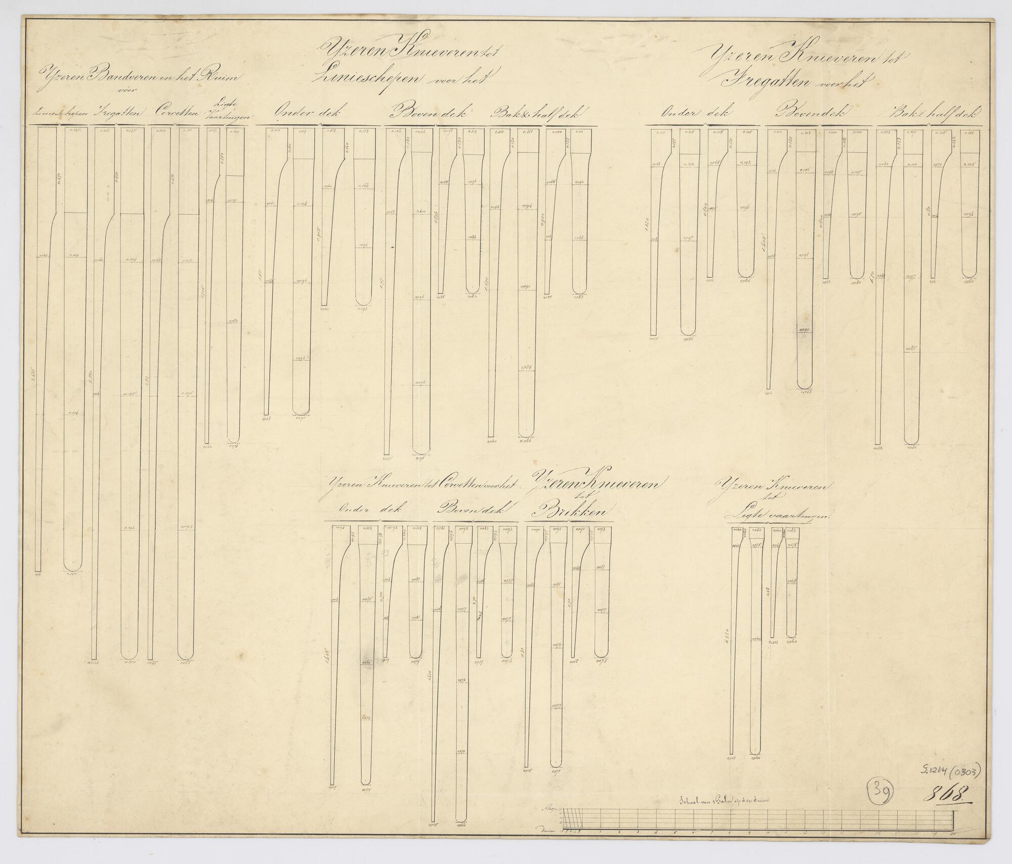 Maattekening van de ijzeren knieveren van linieschepen, fregatten en brikken.