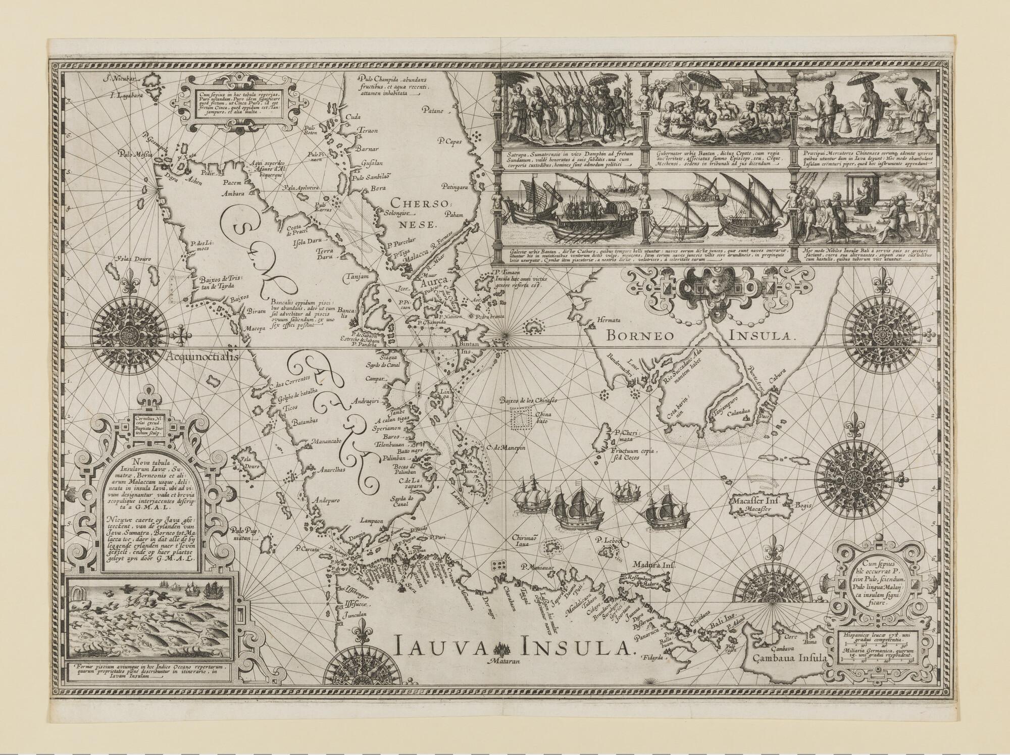 Kaart van Indonesië door G.M.A. Lodewijksz. Uitgave Cornelis Claes, Amsterdam, circa 1600.