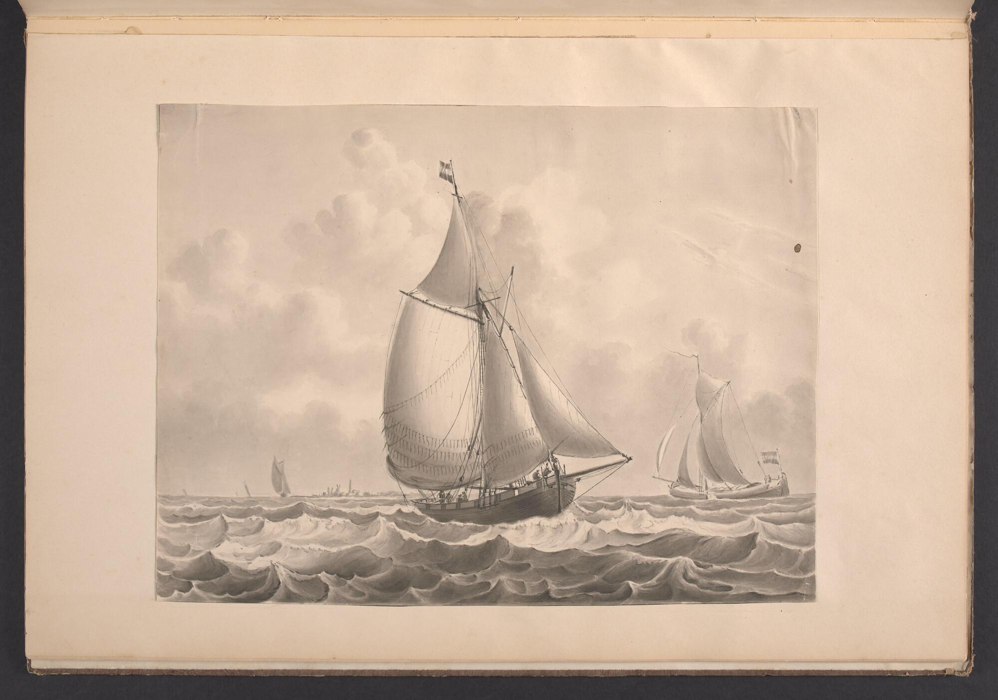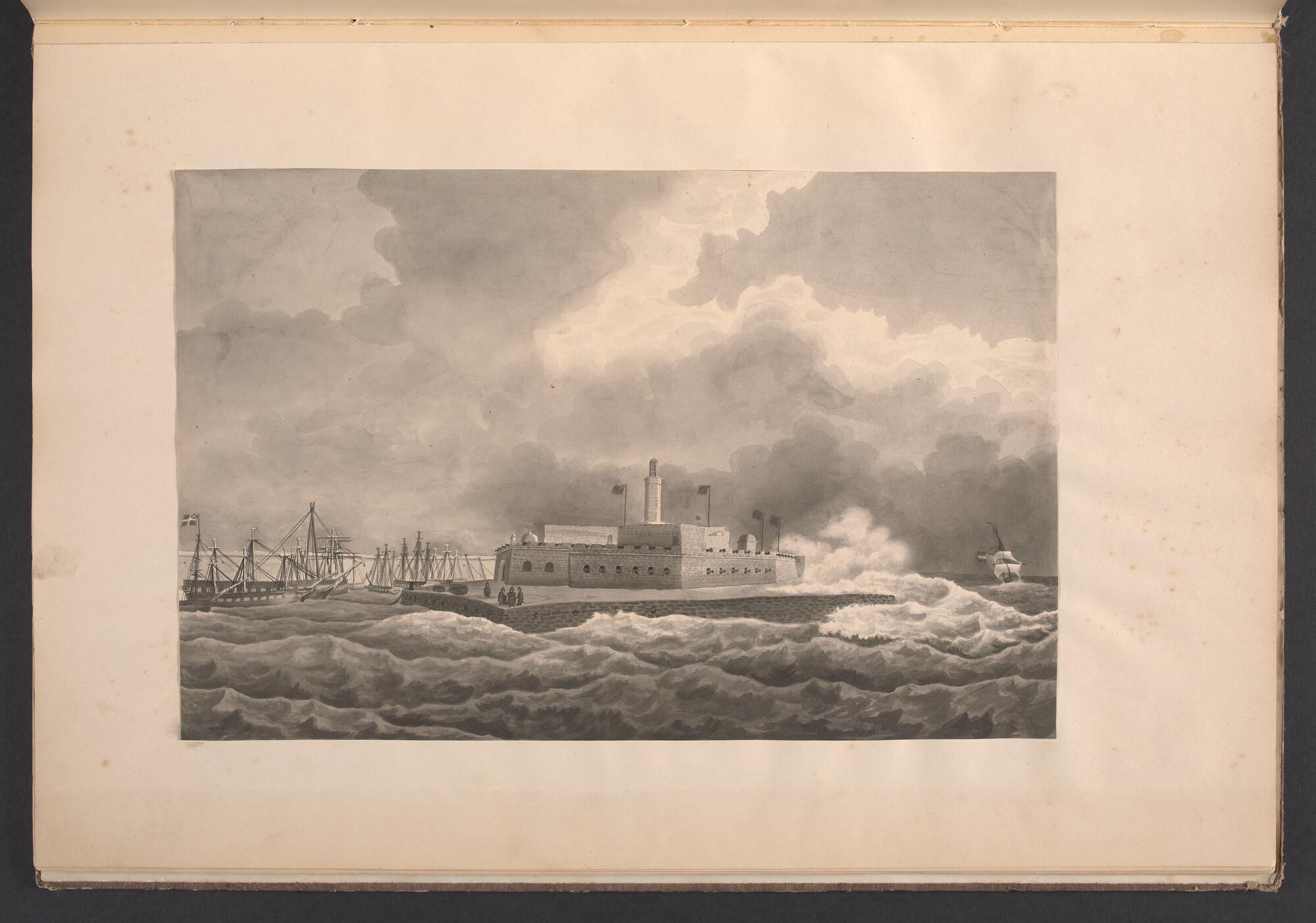 Album met met 10 tekeningen gemaakt op diverse zeereizen door Dirk Muller, Jacob Swart en W. Stort, 1818-1838. De tekeningen zijn o.m. van Kroonstad (Kronstadt), het kasteel Kroonborg, de zuil van Pompejus, Fort St. George del Mina (Elmina), Banda Neira, Juan Fernandez en de waterplaats Gourou-Gourou op Ambon.
